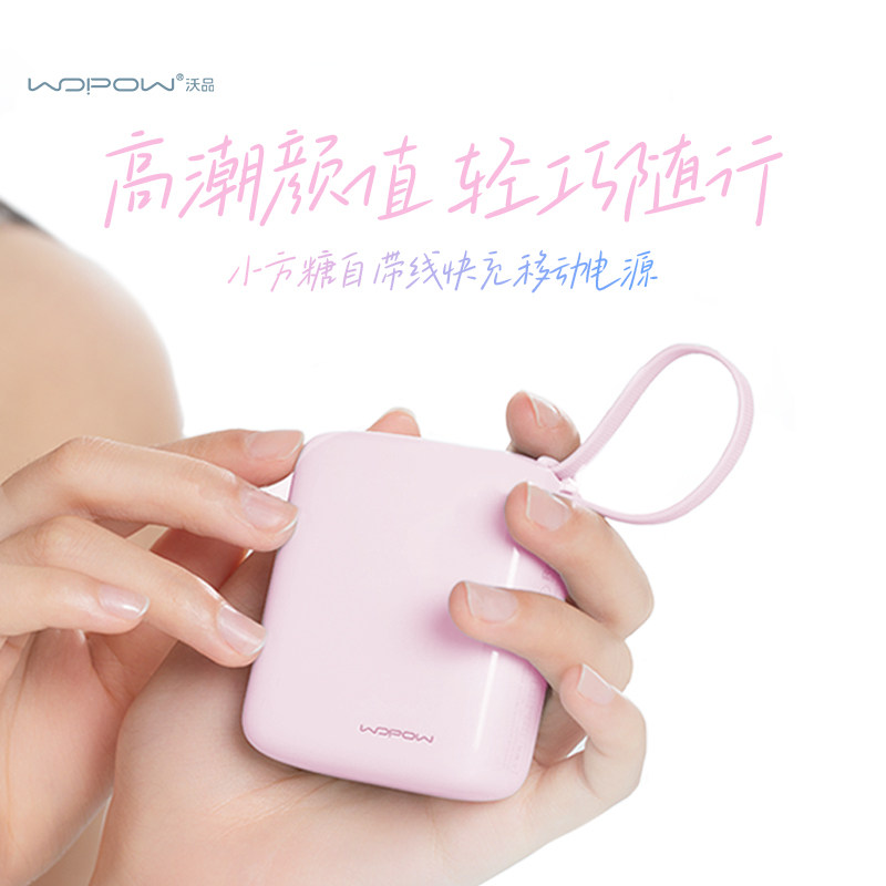【国家3C认证】WOPOW沃品充电宝20000毫安大容量快充小巧便携上飞机超薄超小移动电源2w自带线新款 方糖