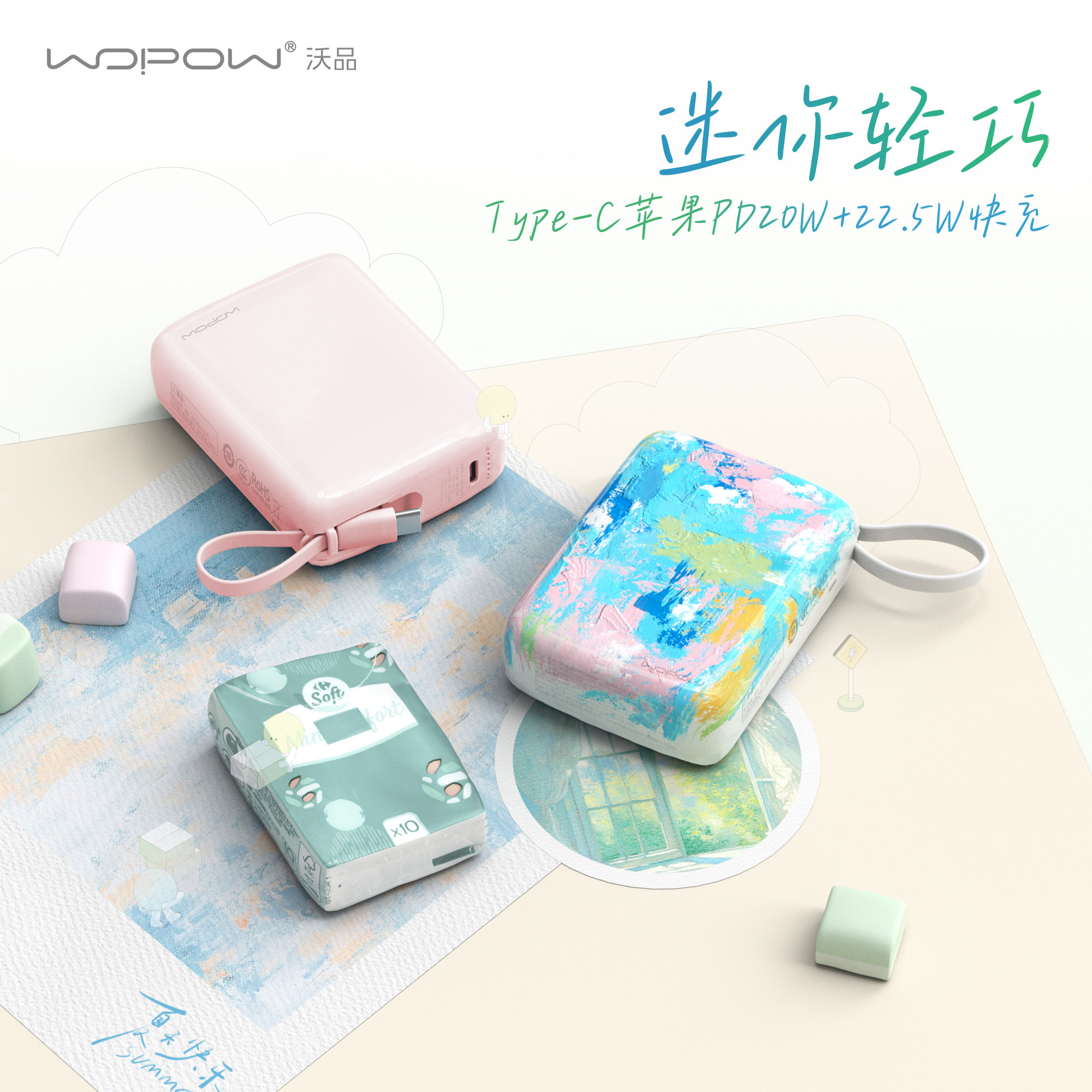 【国家3C认证】WOPOW沃品充电宝小巧便携自带线大容量快充20000毫安可上飞机新款移动电源超迷你型超薄小彩蛋