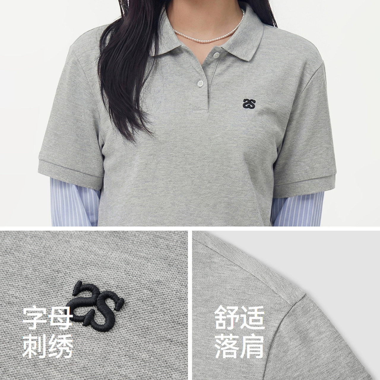 森马POLO衫女夏季字母刺绣宽松落肩质感简约休闲风潮流百搭套头衫