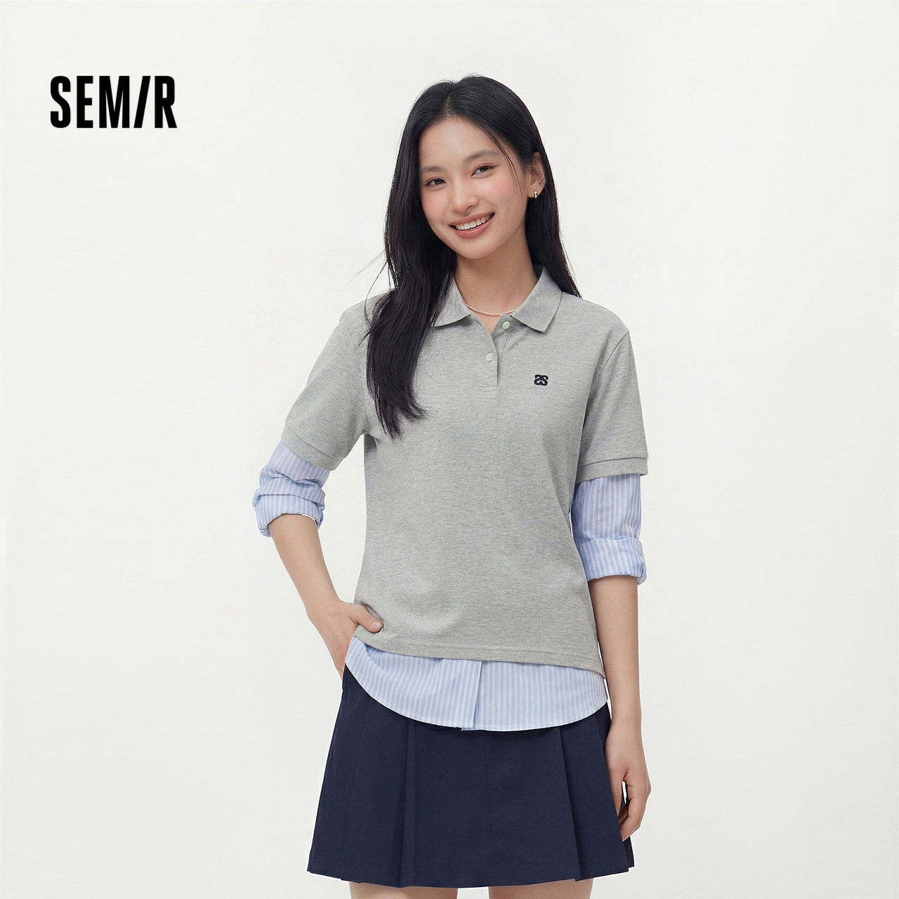 森马POLO衫女夏季短款正肩修身字母绣花套头衫简约气质小个子衣服