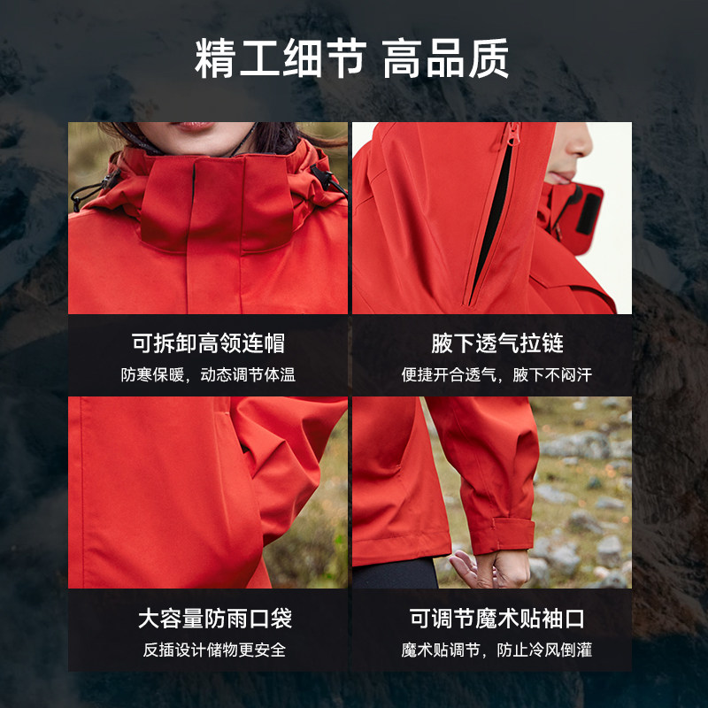 骆驼冲锋衣三合一可拆卸两件套男女情侣款外套户外防水旅游登山服