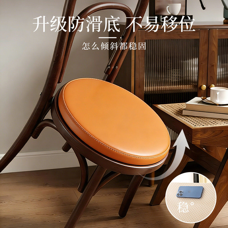防水皮革圆形坐垫慢回弹记忆棉易打理防滑餐椅飘窗办公椅垫可拆洗