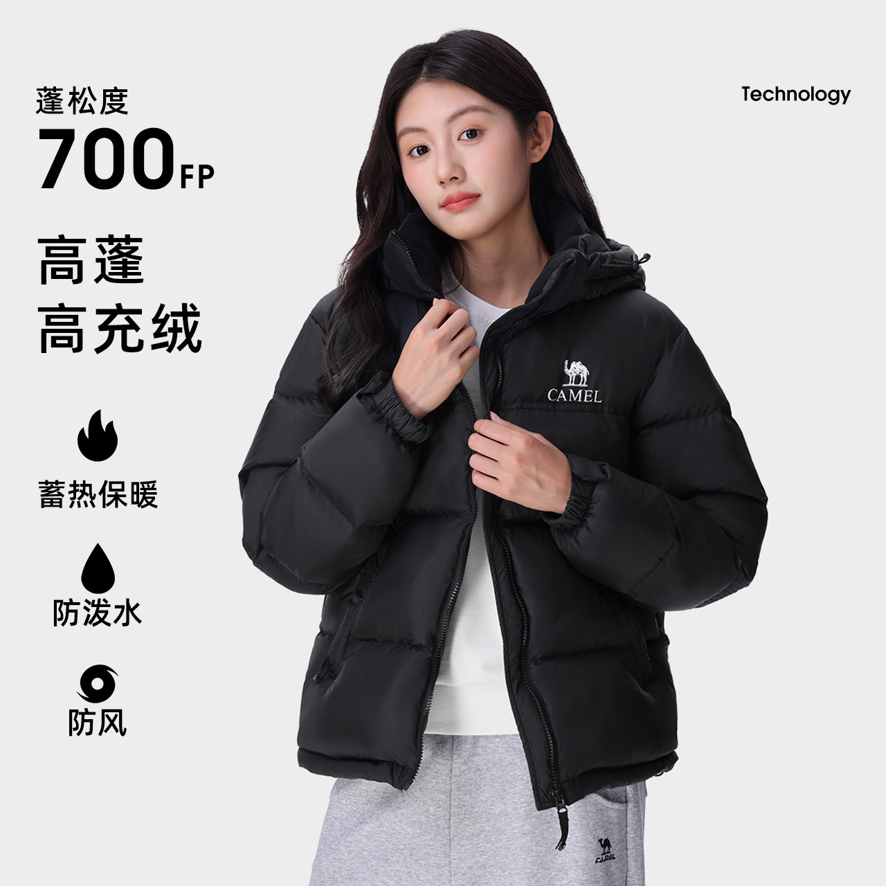 骆驼女装羽绒服女冬季2025新款拒水保暖加厚面包服百搭连帽外套女