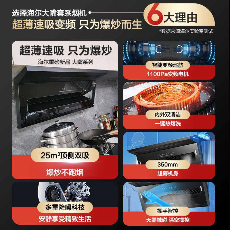 海尔油烟机家用厨房变频ai自清洁油烟机正品家电厨房电器厨具C61