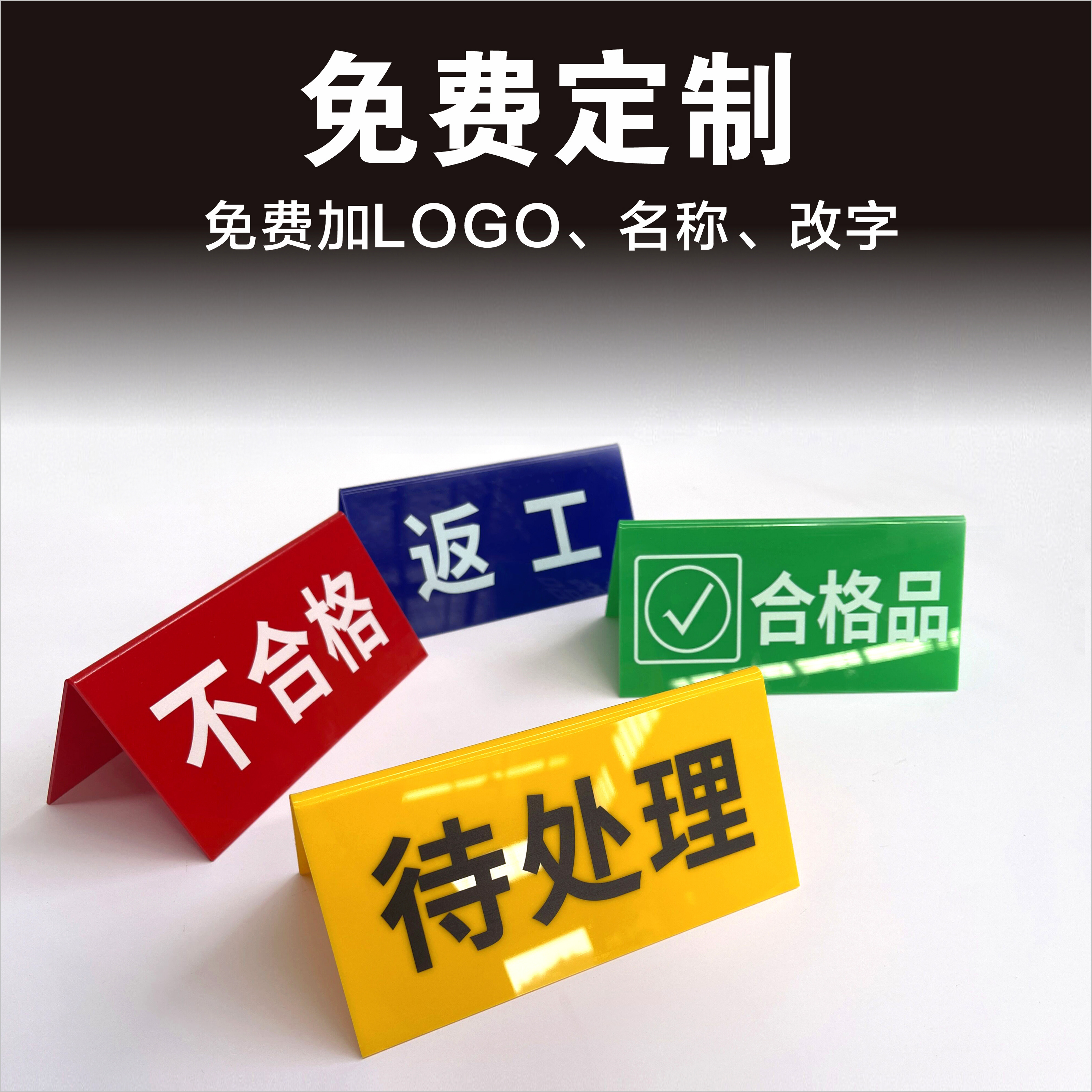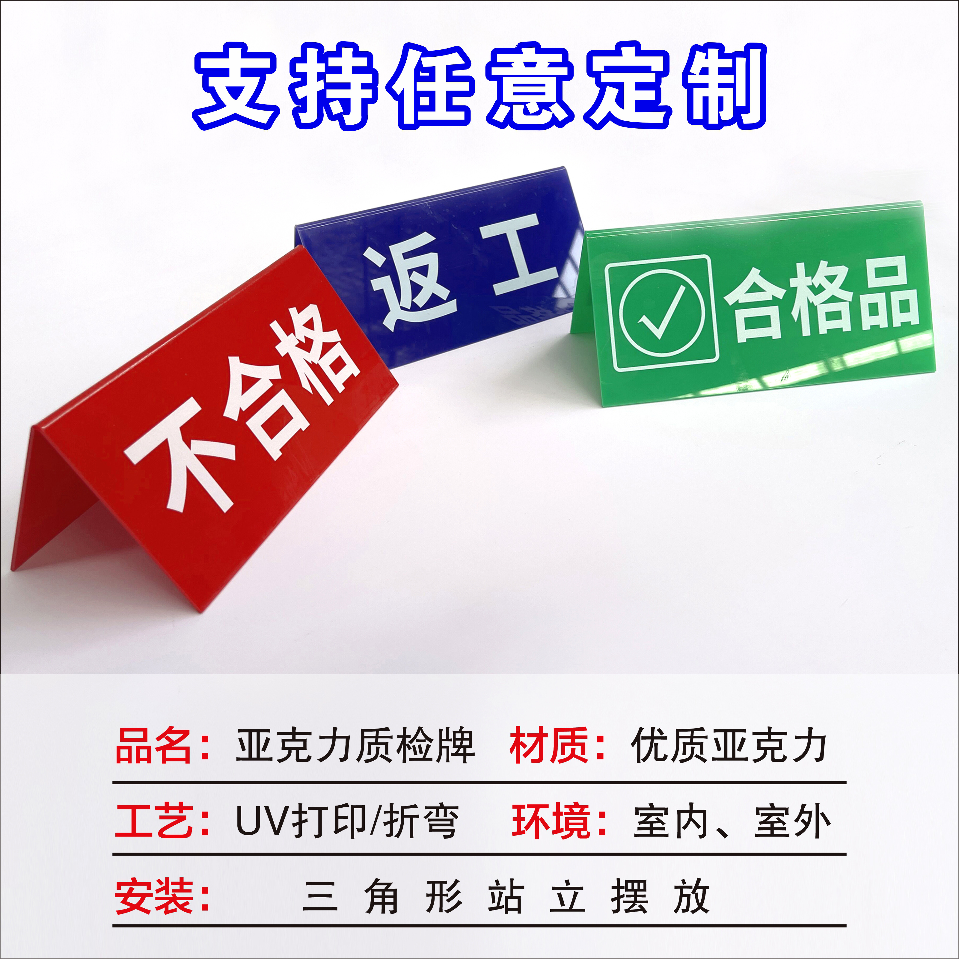 不合格区标识牌质检产品状态待检区亚克力折弯牌彩色三角牌桌台牌