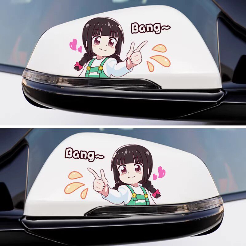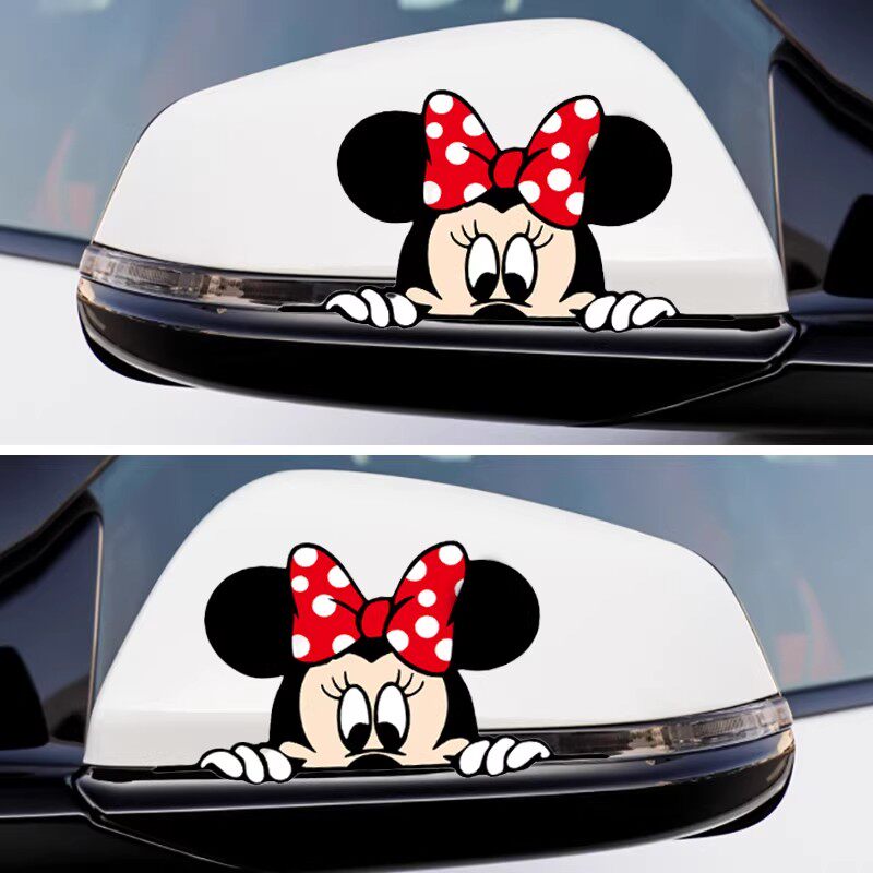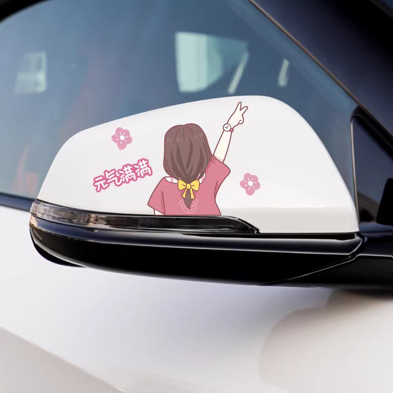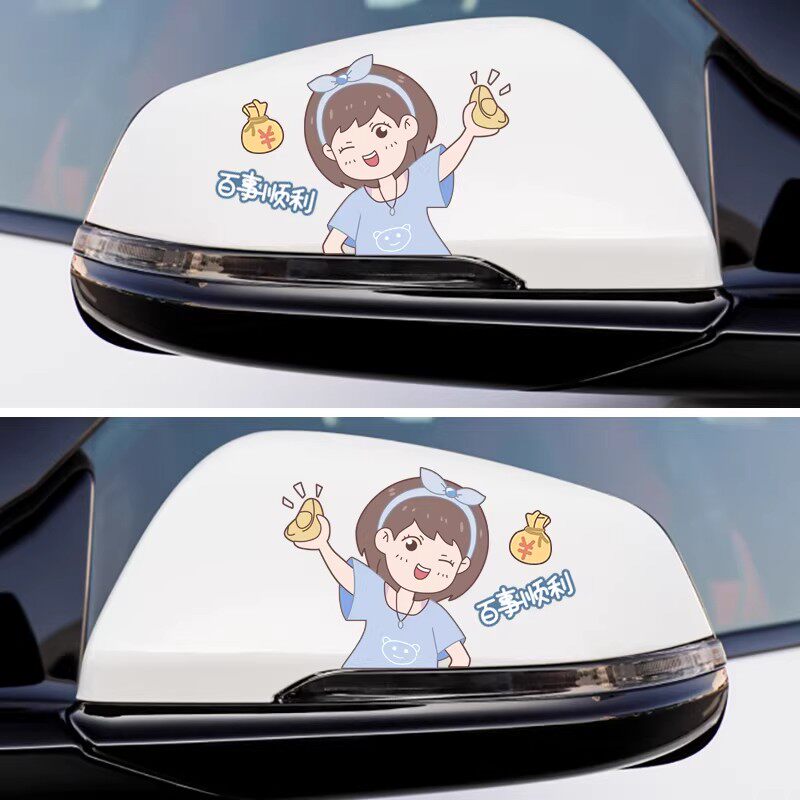 汽车后视镜车贴可爱卡通人物反光镜装饰贴创意倒车镜贴纸划痕遮挡