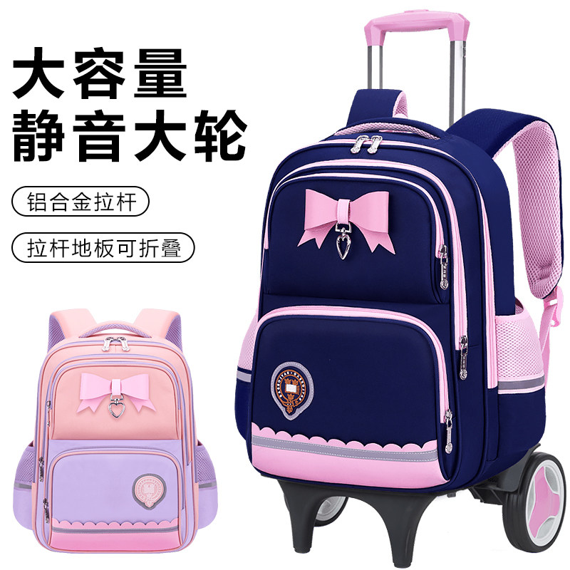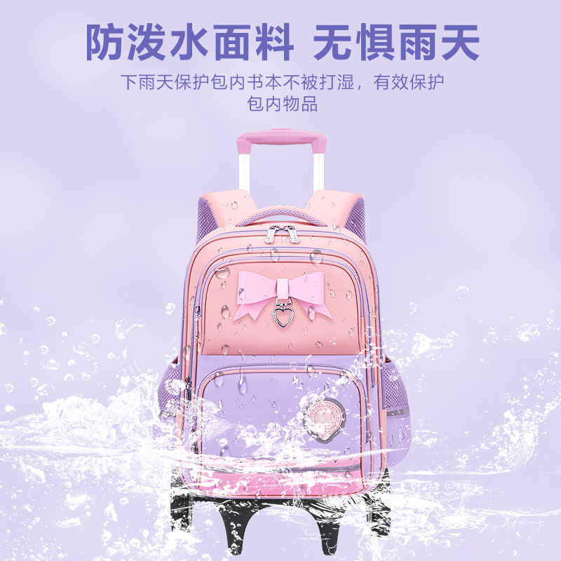 26新款儿童拉杆车书包带轮小学生1-3-6年级女孩大容量手拖拉车爬楼梯两用可拆卸轻便减负背包