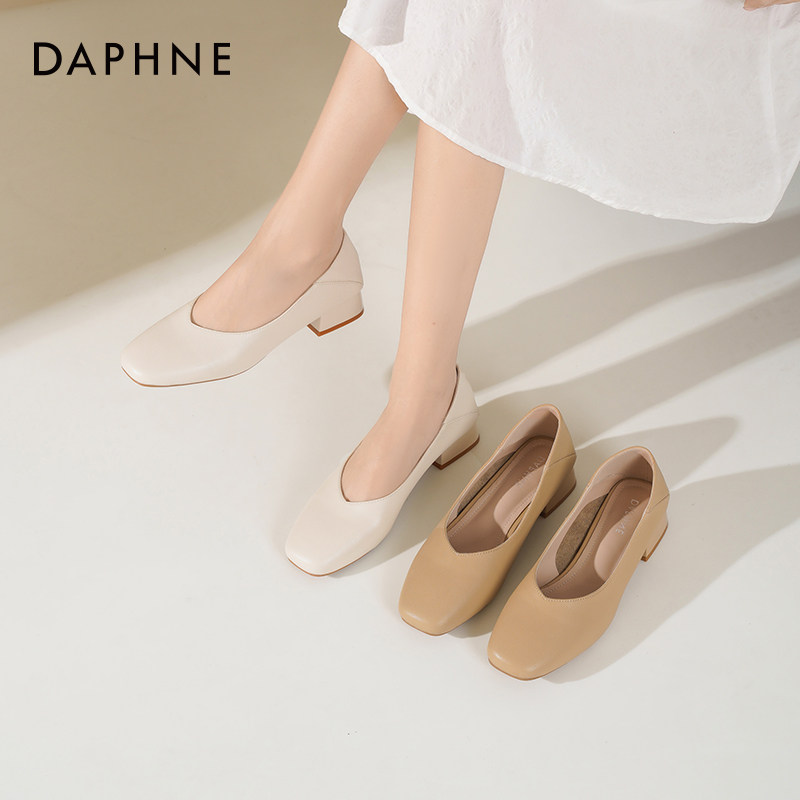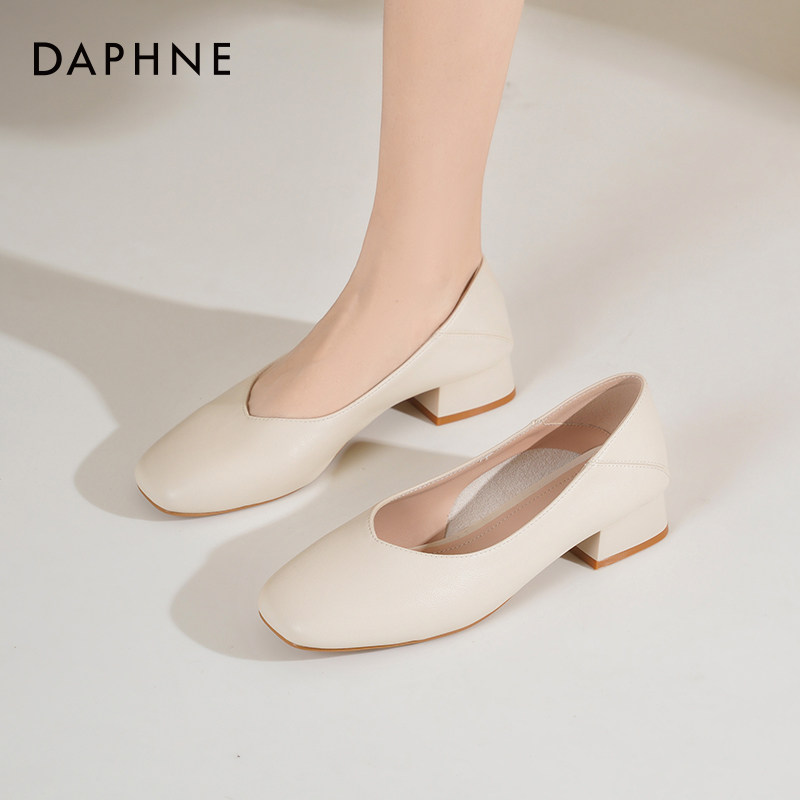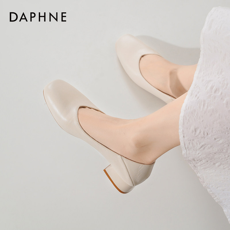 达芙妮粗跟高跟鞋女2026新款春季通勤白色妈妈鞋子气质浅口单鞋女