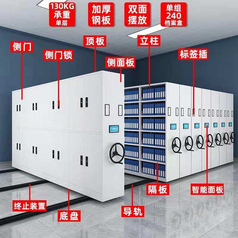 智能档案室密集柜电动手摇档案柜钢制凭证柜移动文件柜RFID密集架