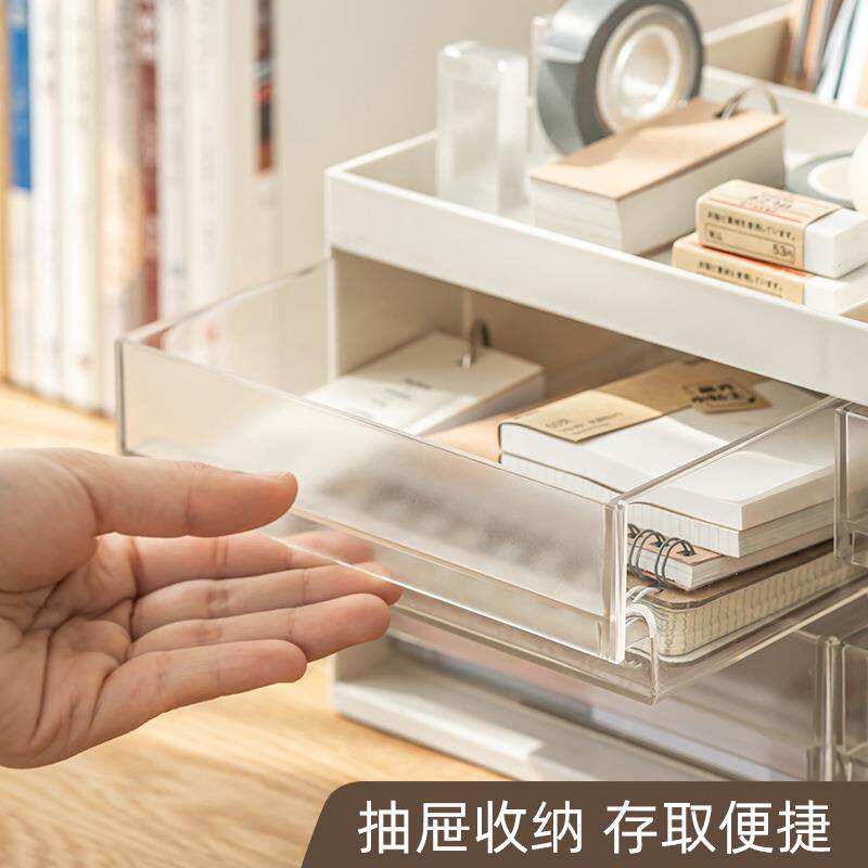 抽屉式文件柜办公文具抽屉式收纳盒分层桌面杂物收纳整理盒ins风透明抽屉盒子