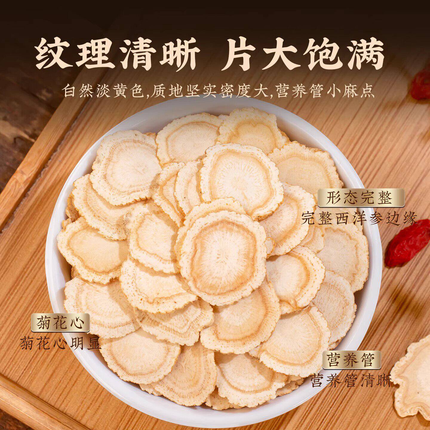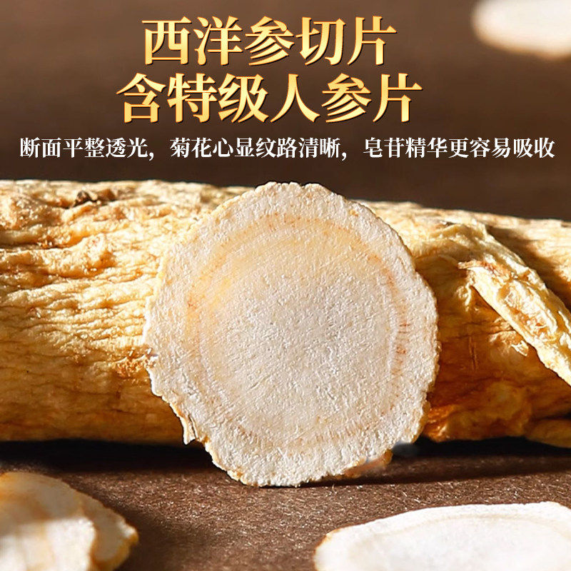 西洋参片500g特级官方旗舰店正品长白山花旗参片粉人参片切片泡水