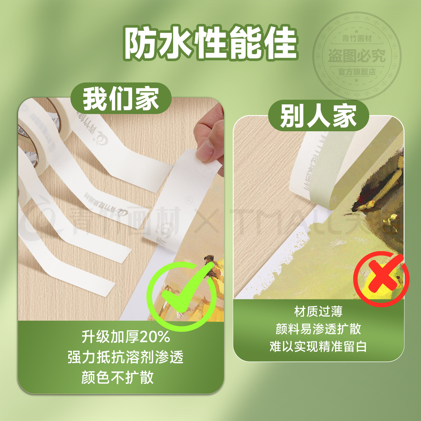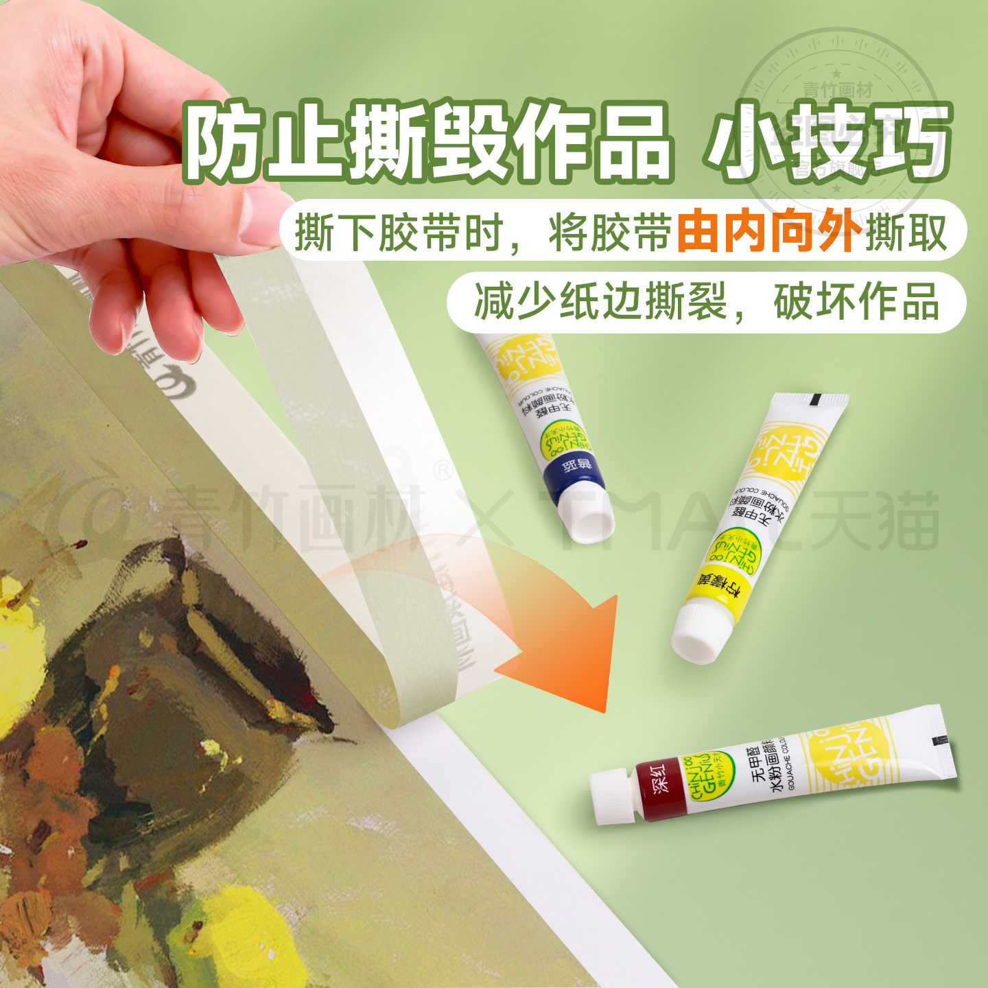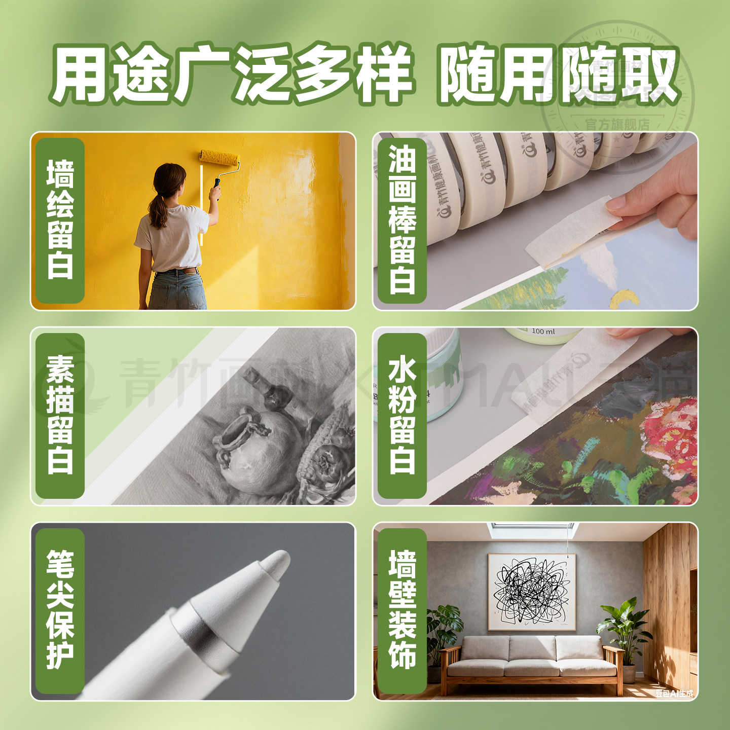 青竹美纹纸胶带美术生专用绘画素描贴边无痕纸胶布美缝装修喷漆分色美纹贴纸胶手撕可书写胶遮蔽高粘度墙面