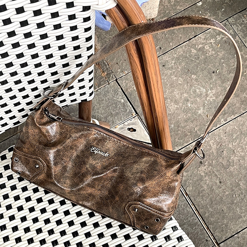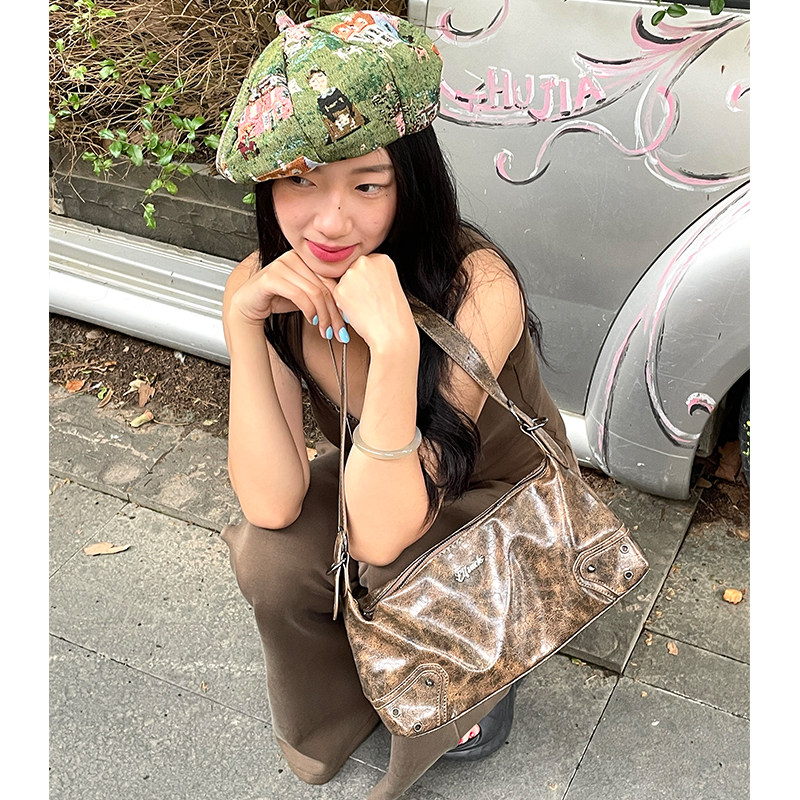 妖精的口袋复古棕咖色单肩包女2025年新款时尚百搭高级感腋下包