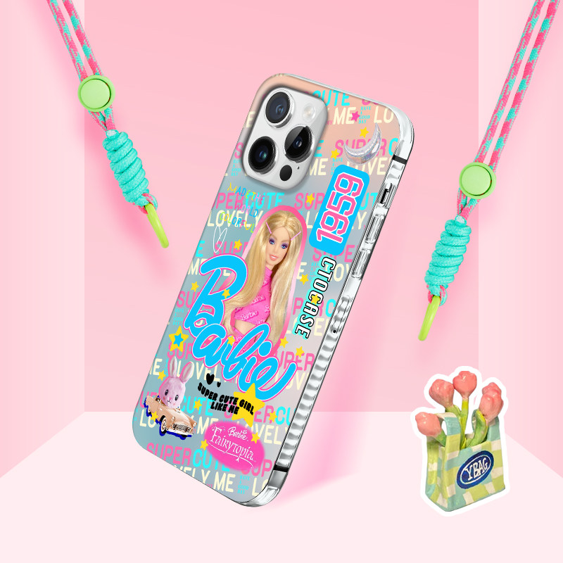 iphone14promax手机壳新款适用苹果13手机套iphone15外壳12pro防摔xsmax镭射渐变11芭比手机壳X全包挂绳斜挎