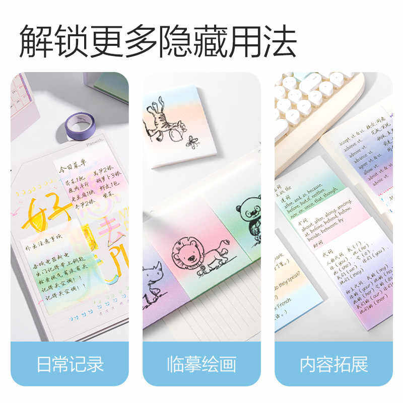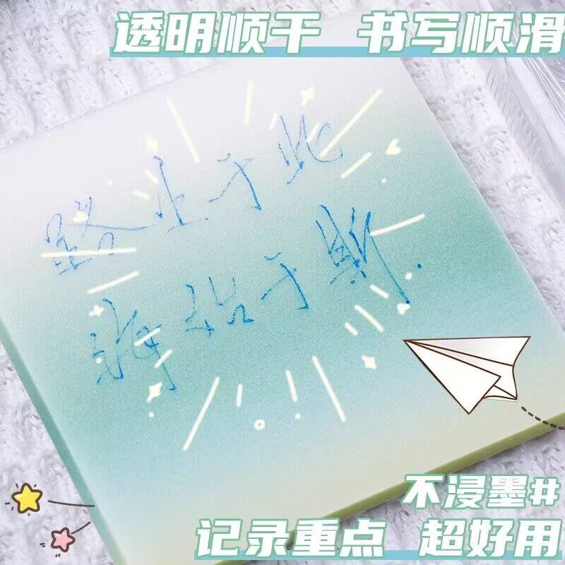 渐变色透明便利贴高颜值透明便签备忘本可撕速干防水标签贴纸