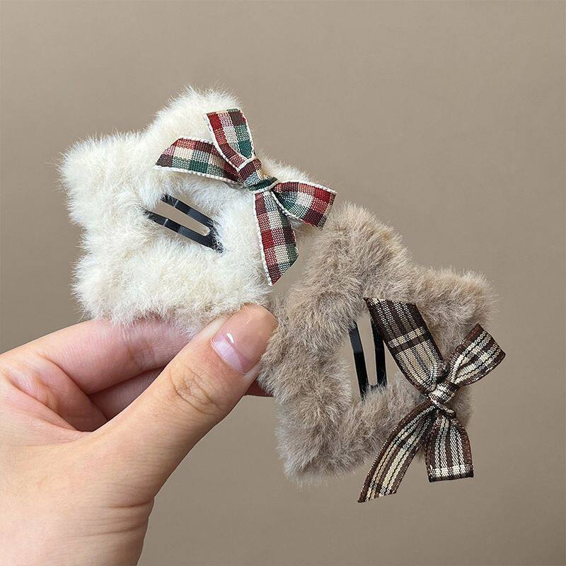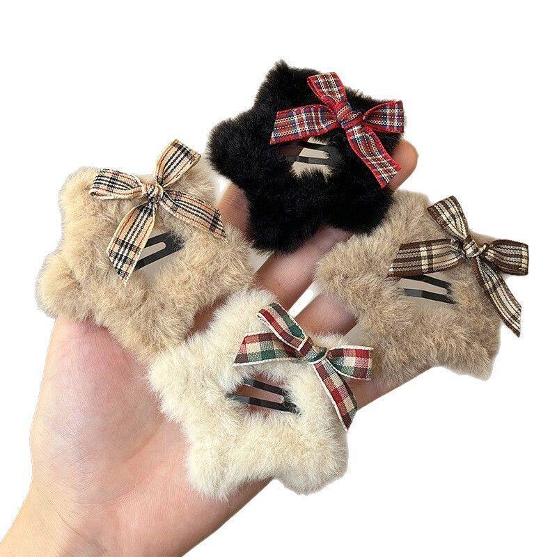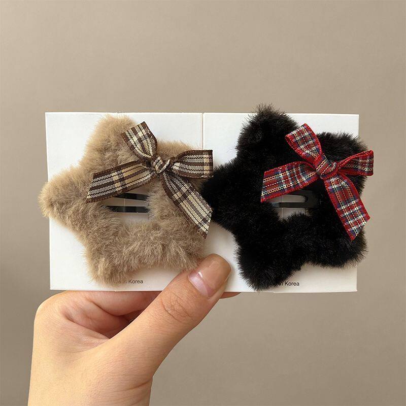 秋冬毛绒五角星发夹女前额侧边刘海夹镂空蝴蝶结碎发bb夹发卡头饰