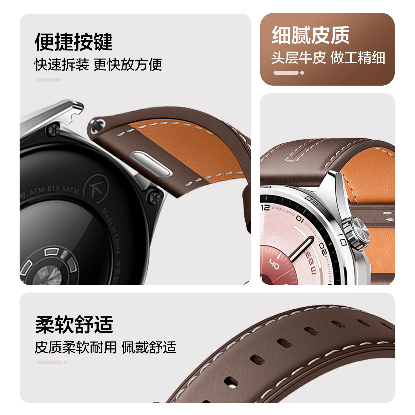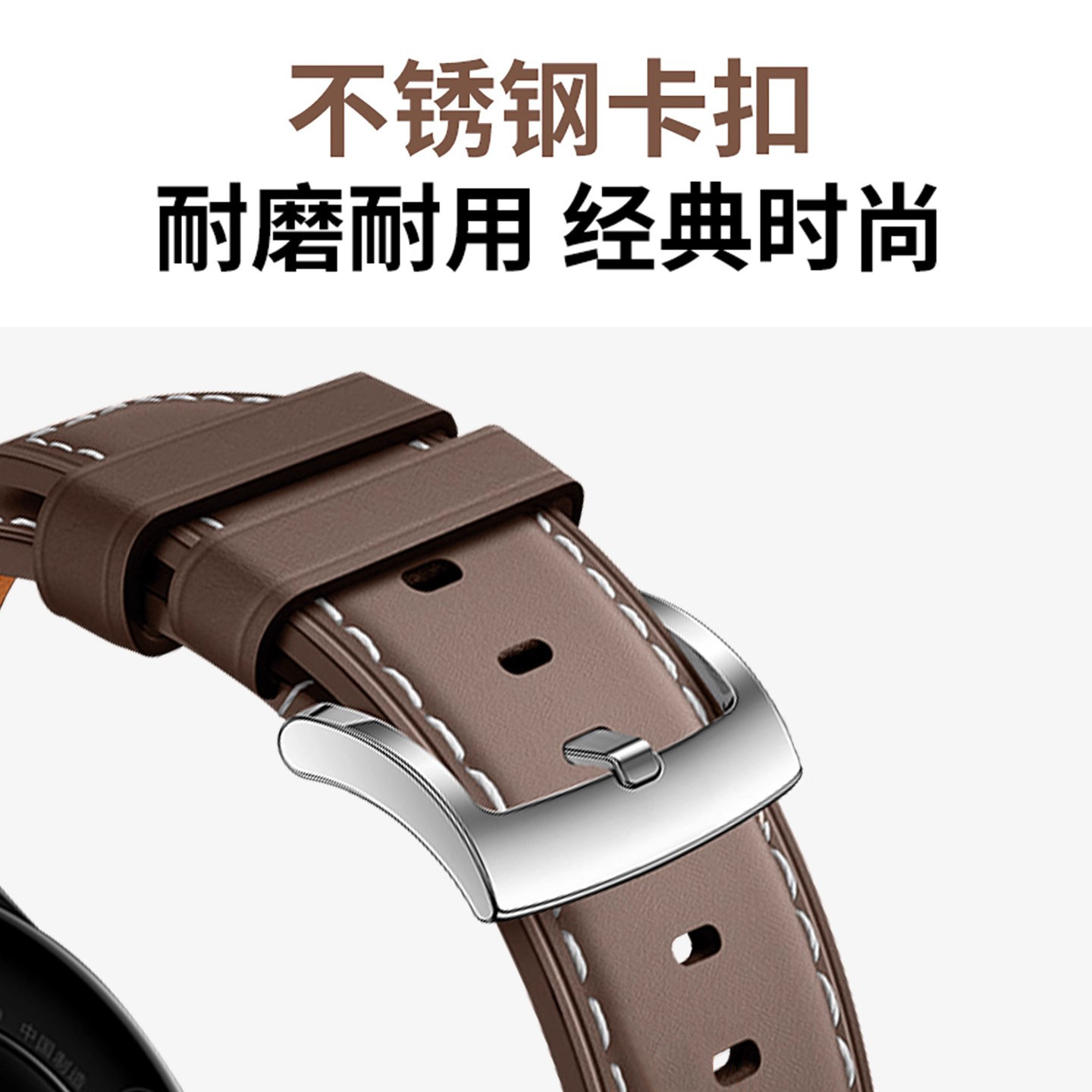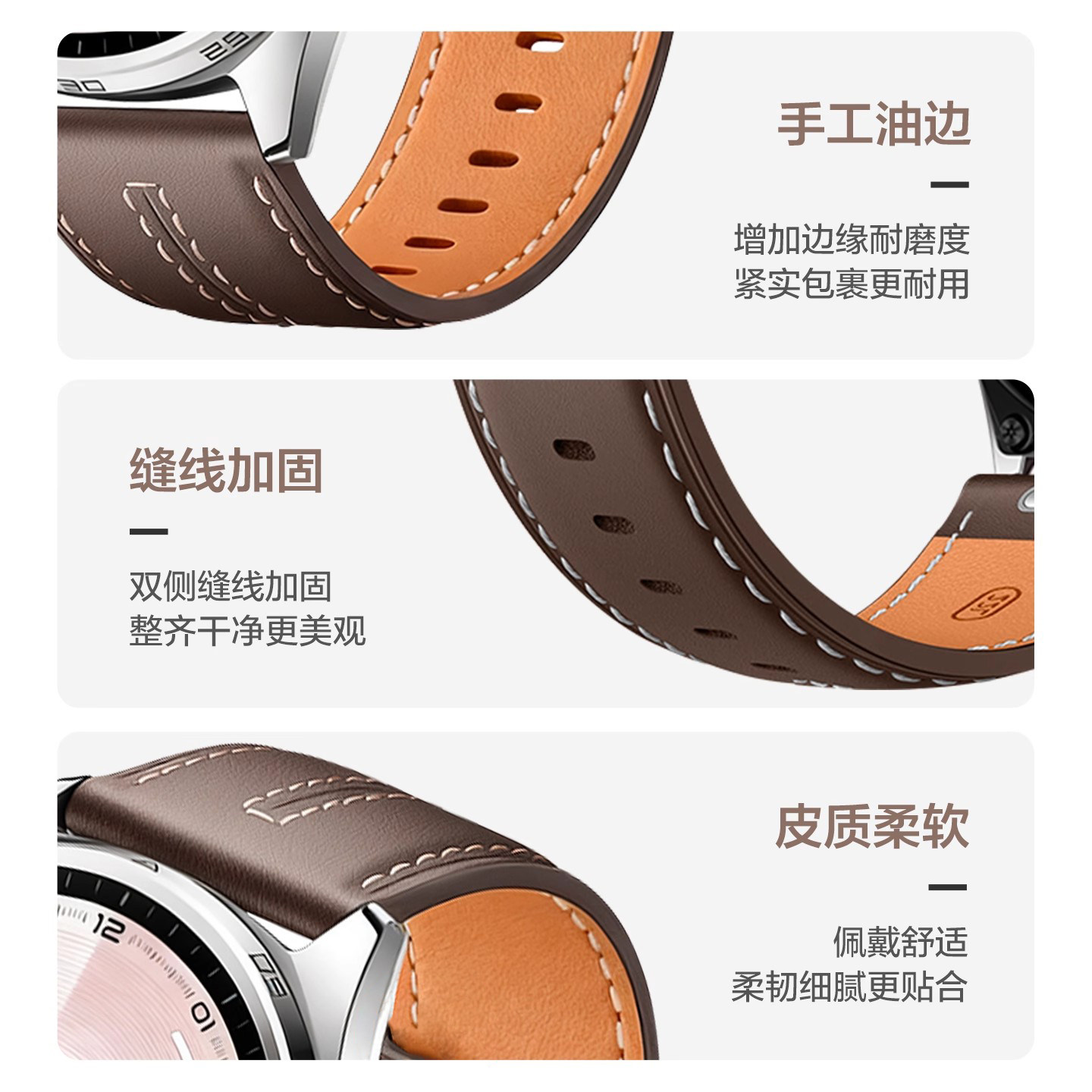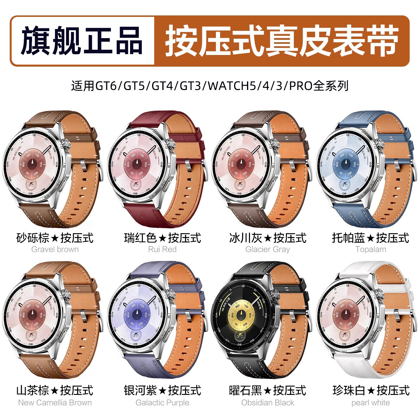 适用华为GT6表带真皮GT6Pro新款watchgt6头层牛皮智能运动GT5手表带按压式通用按键配件秋22冬男46mm女非原装