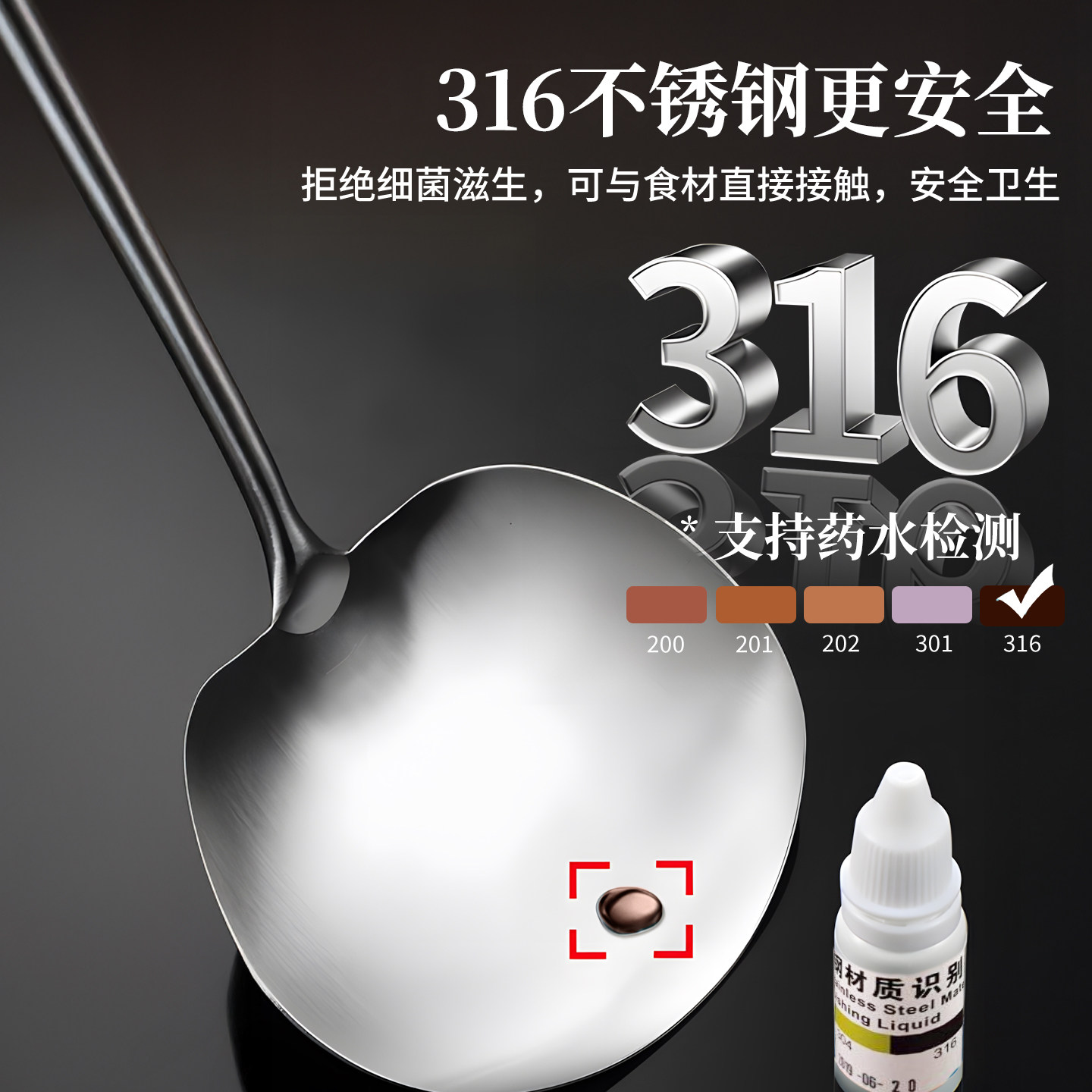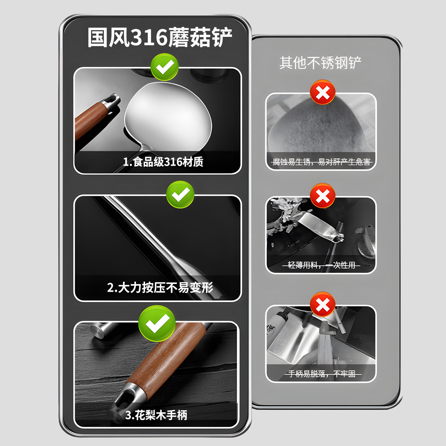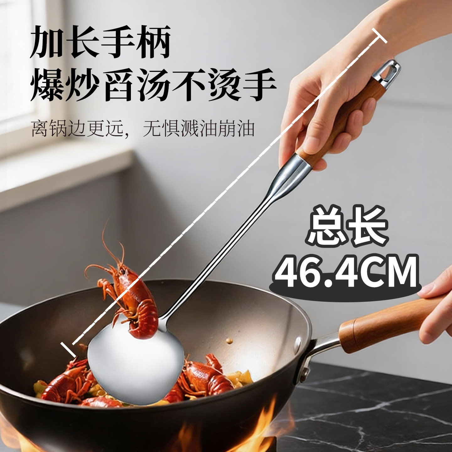 锅铲316不锈钢蘑菇铲木柄把铁锅铲加厚炒菜勺食品级家用炒菜铲子
