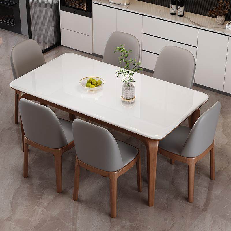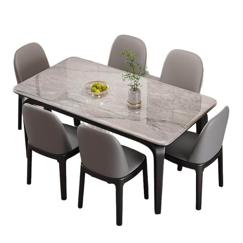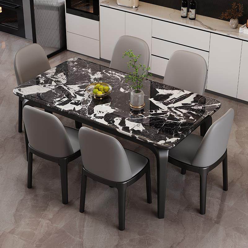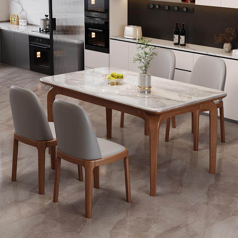 高端实木微晶石餐桌椅组合现代简约家用小户型长方形大理石饭桌子