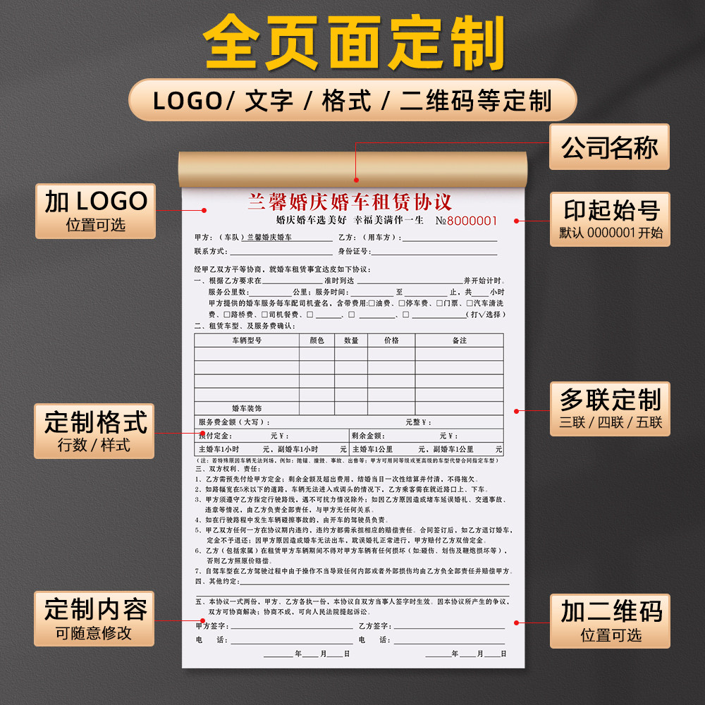 【婚庆店收据】礼服馆收费押金收条婚礼策划布置协议婚车租赁合同