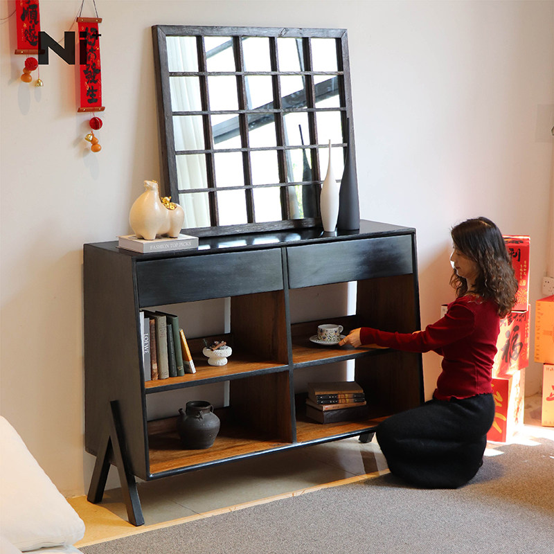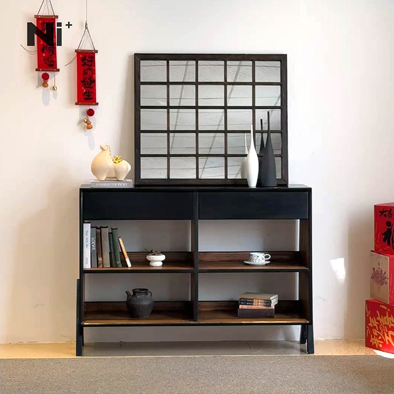 Ni+尼家实木餐边柜中古风客厅黑色复古风民宿储物柜侘寂风玄关柜