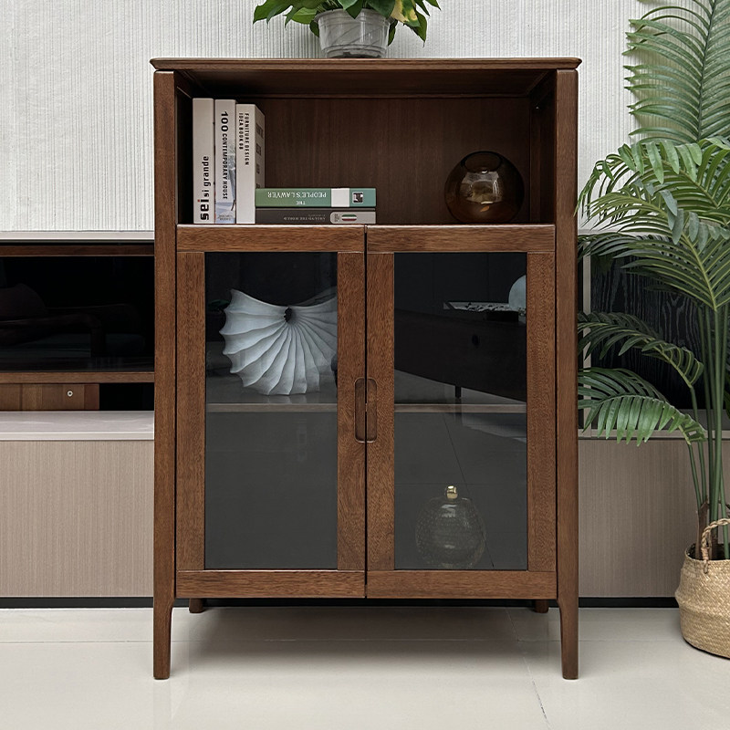 简约现代胡桃木矮边柜餐客厅家用全实木酒柜储物小户型新款置物柜