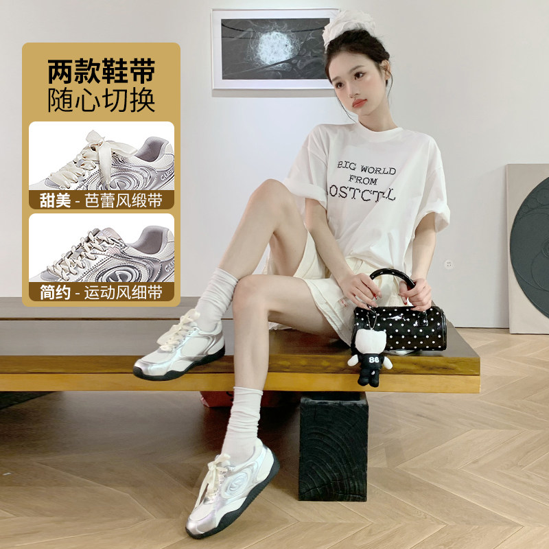 【王俊凯同款】骆驼月牙德训鞋银色2026春夏网面透气芭蕾赛车板鞋