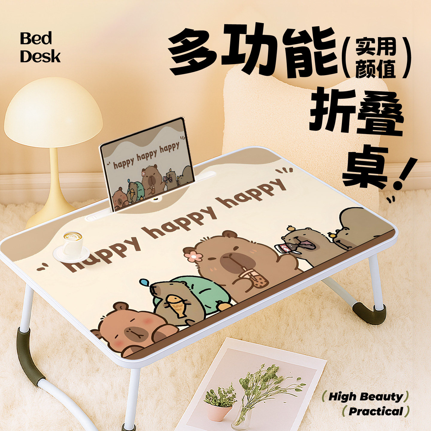 卡皮巴拉床上小桌子笔记本电脑桌学生宿舍可折叠儿童学习书桌家用写作业小桌板卧室飘窗床头桌懒人神器膝上桌