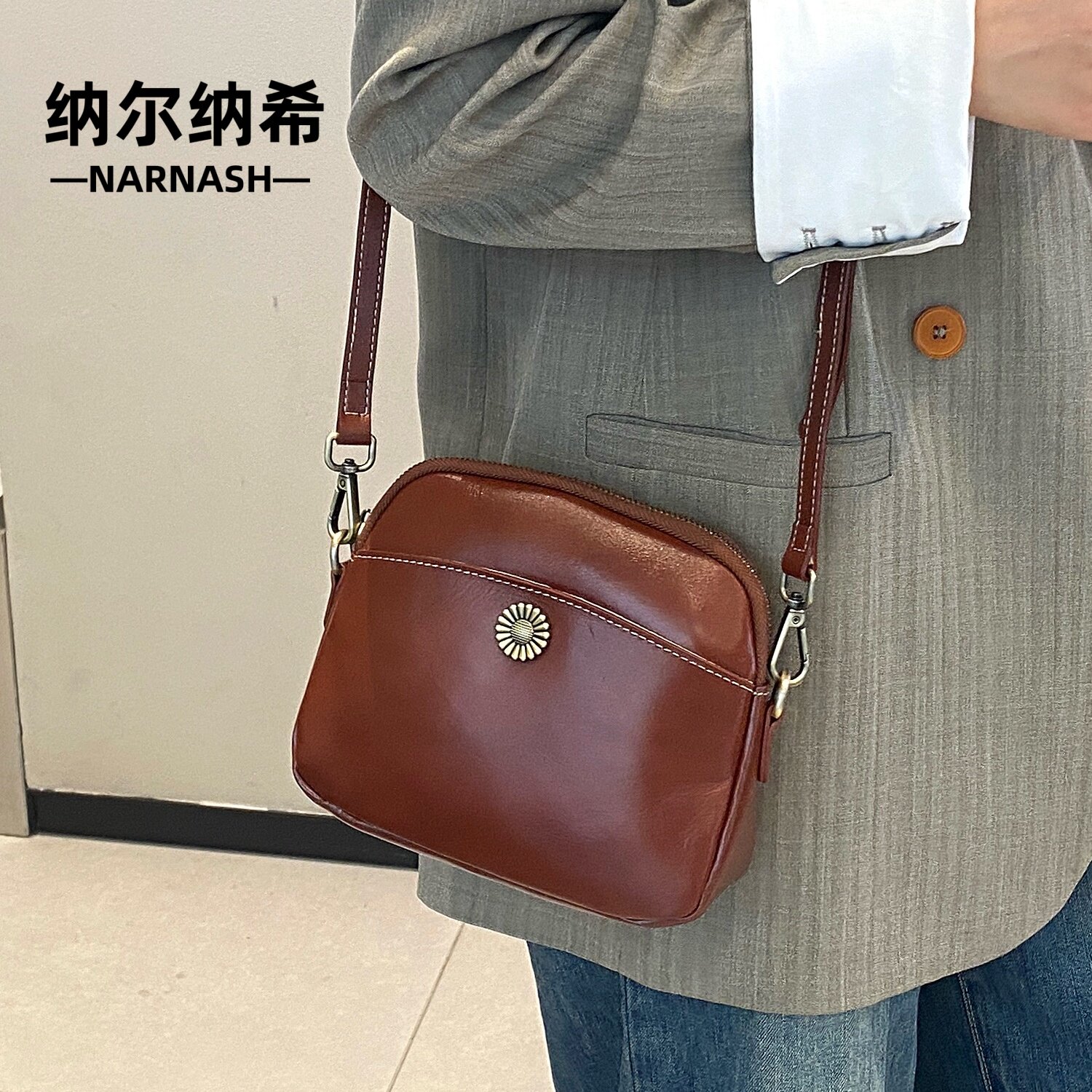 纳尔纳希头层牛皮女包2026新款手机包流行高级感单肩斜挎包小方包