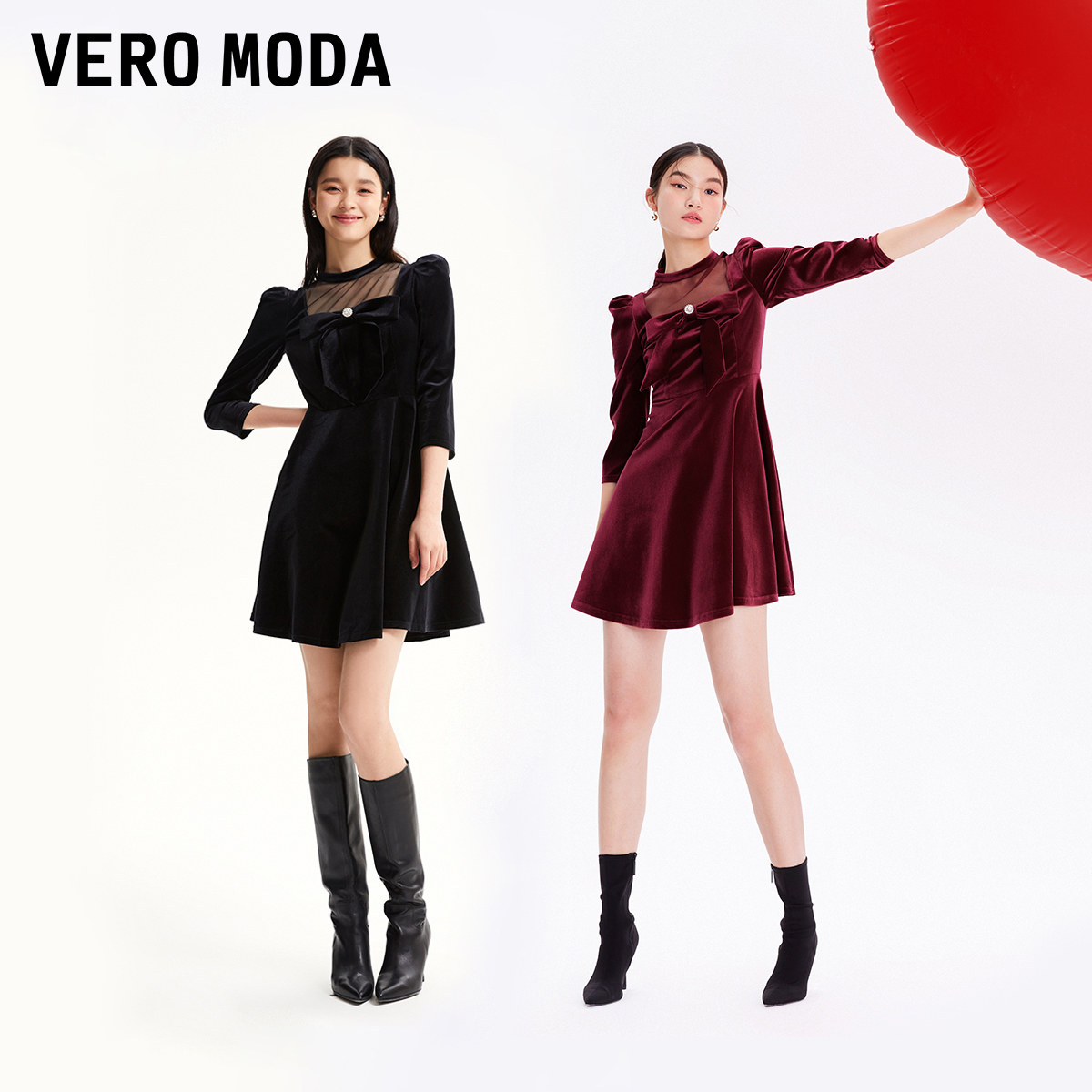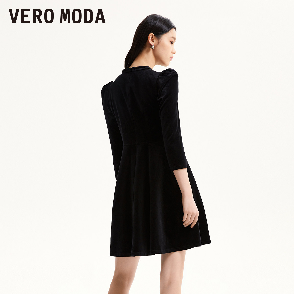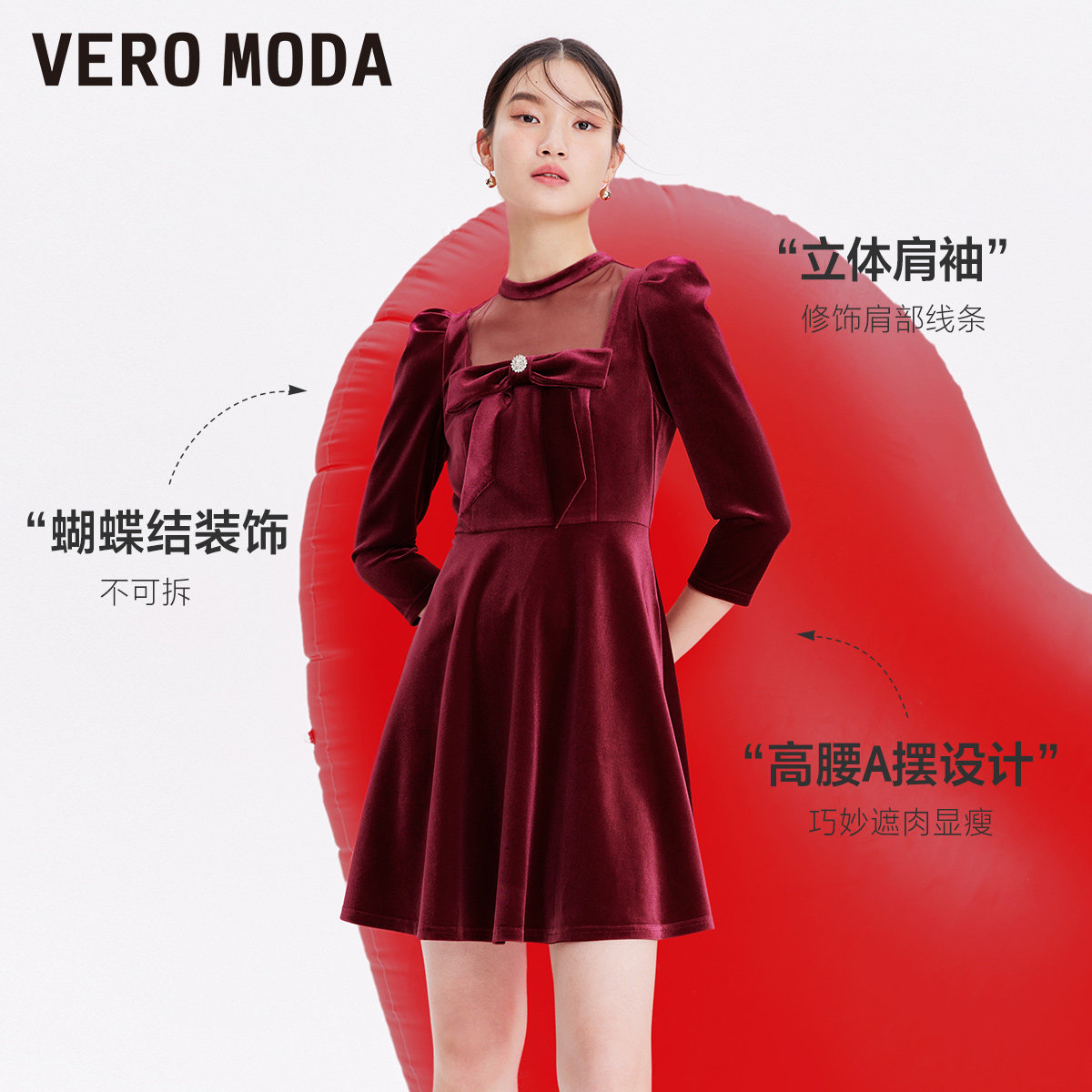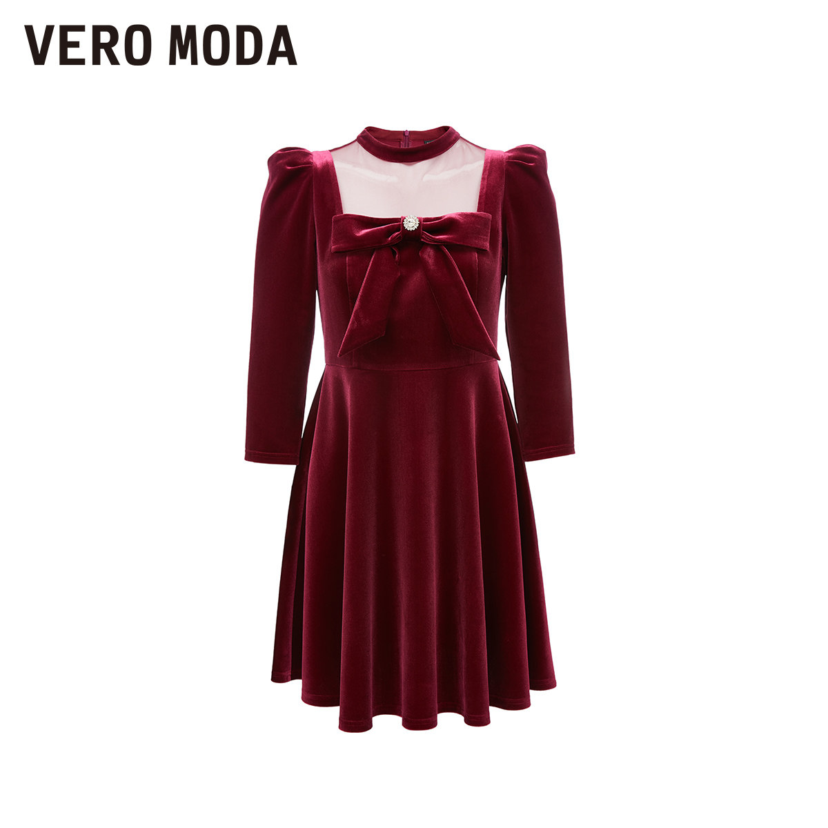 Vero Moda奥莱连衣裙子秋冬清仓丝绒薄纱拼接甜美复古收腰短裙女