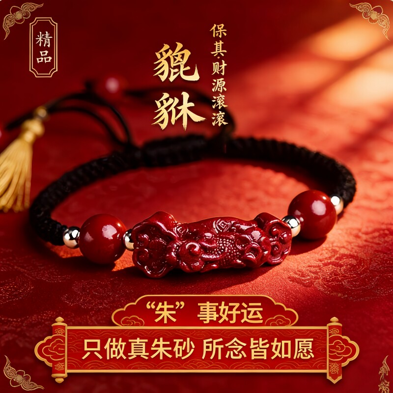 【2026平安顺遂】本命朱砂如意貔貅手串男女款编织手链平安红色绳