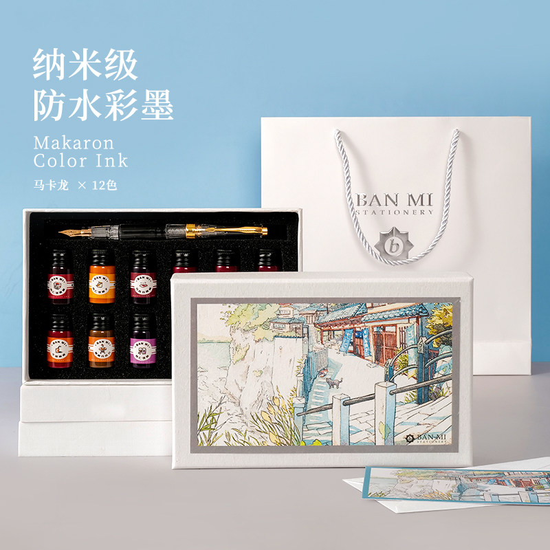 BANMI限定-日系淡彩防水墨水钢笔勾线彩色墨水漫画水彩颜料彩墨套装绘画防潮湿抗晕染书签染卡创意制作