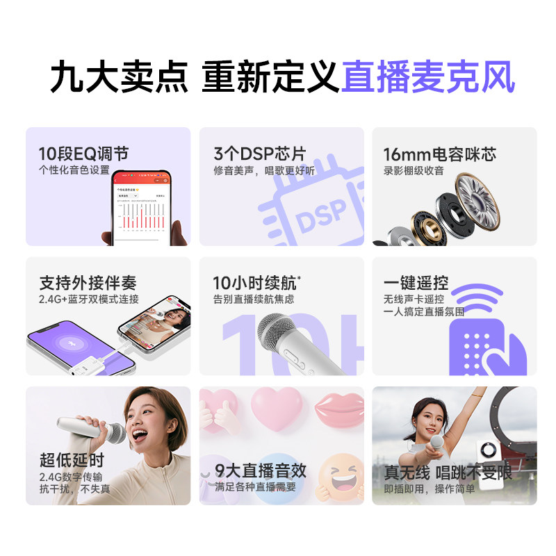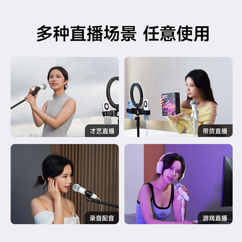 纯麦蓝牙无线麦克风手机直播专用声卡收音话筒家用K歌录音电容麦