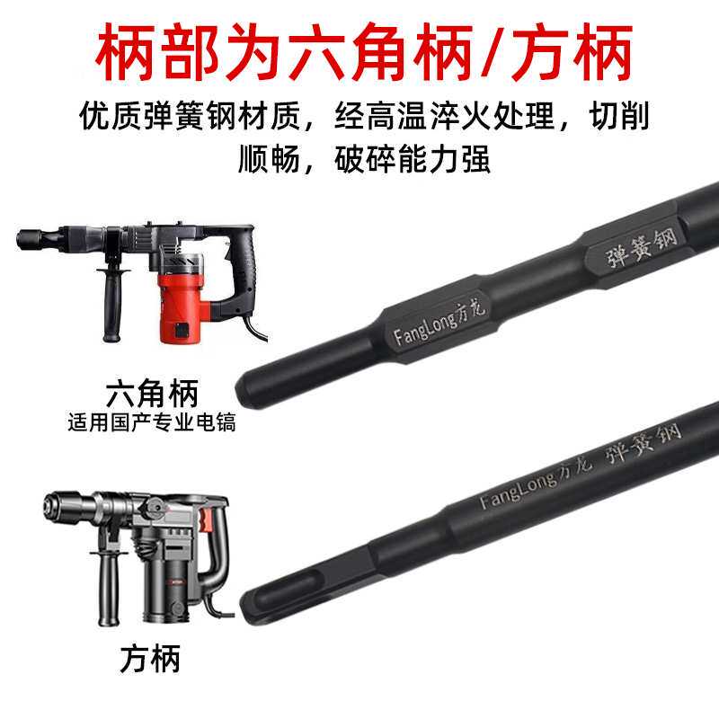 弹簧钢电锤扁凿子电镐铲头电搞锤凿头冲击钻打混凝土方柄开槽钻头