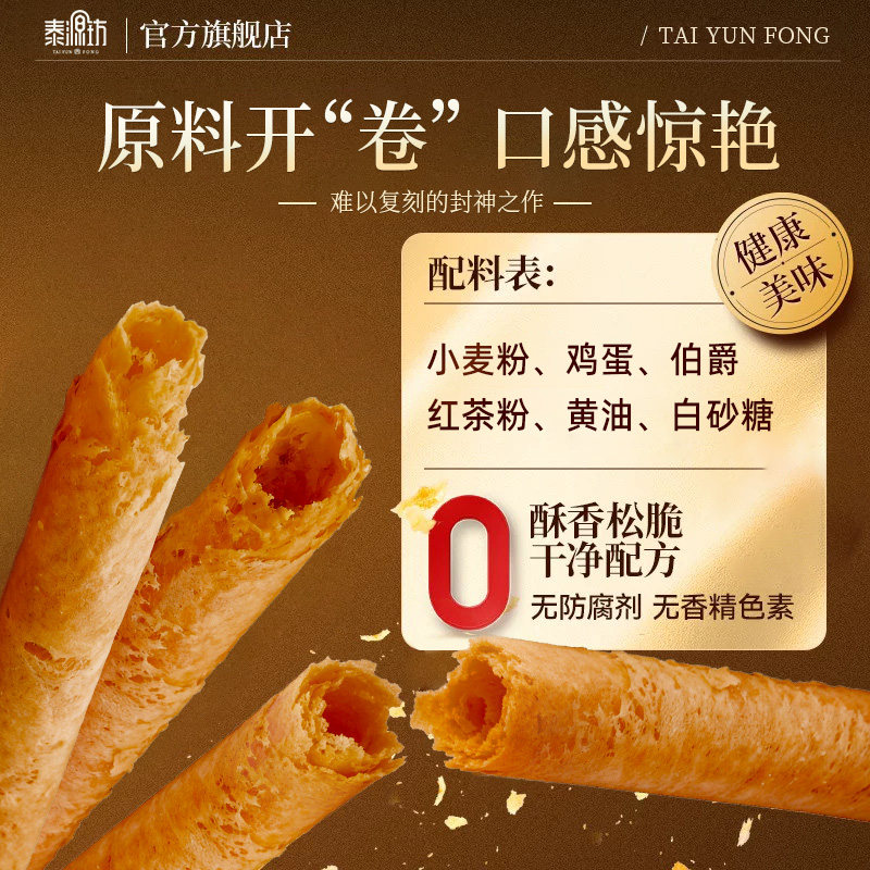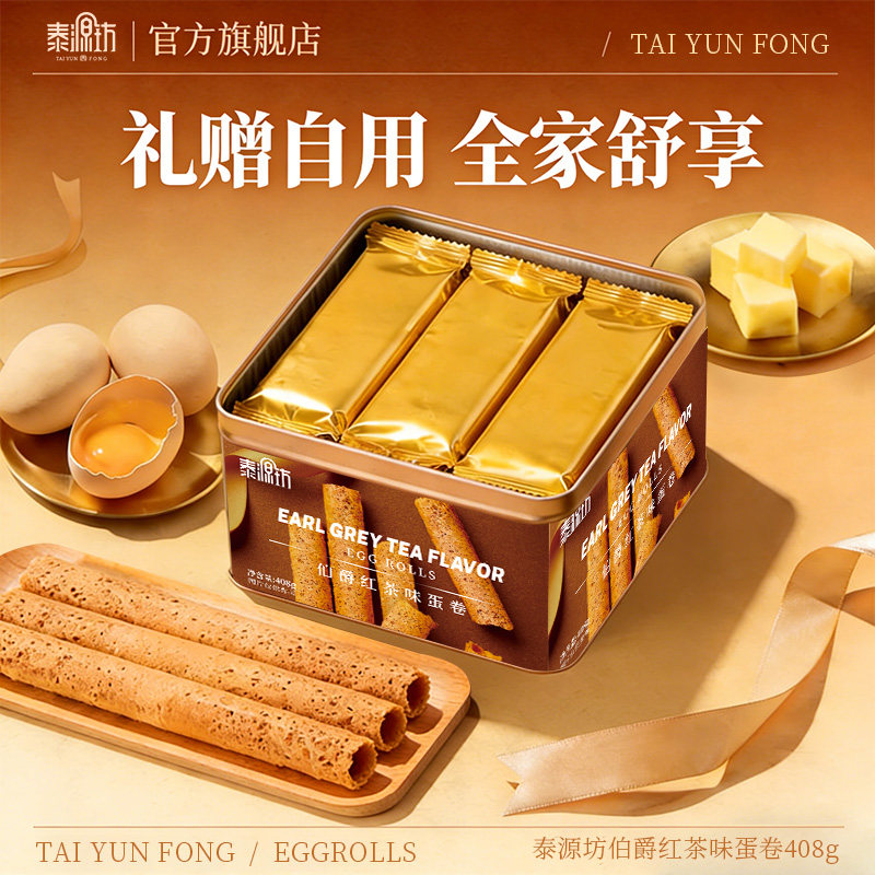 泰源坊港式鸡蛋卷红茶味408g礼盒休闲零食糕点饼干伴手礼手信特产