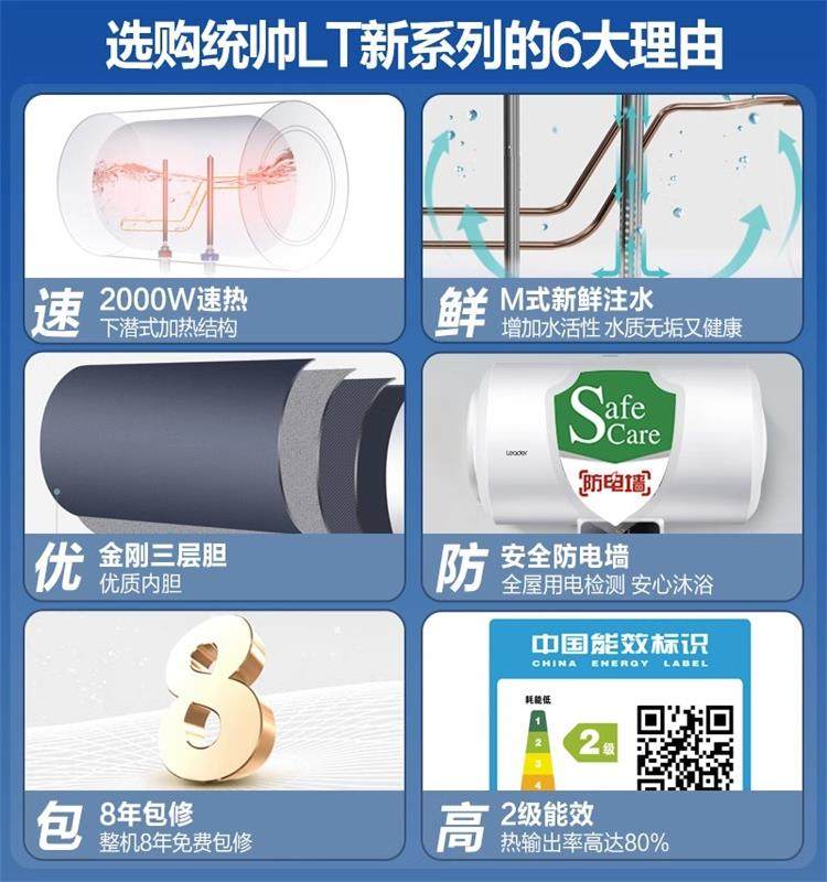 海尔出品Leader/统帅 LES80H-LT电热水器60/80升卫生间速热储水式