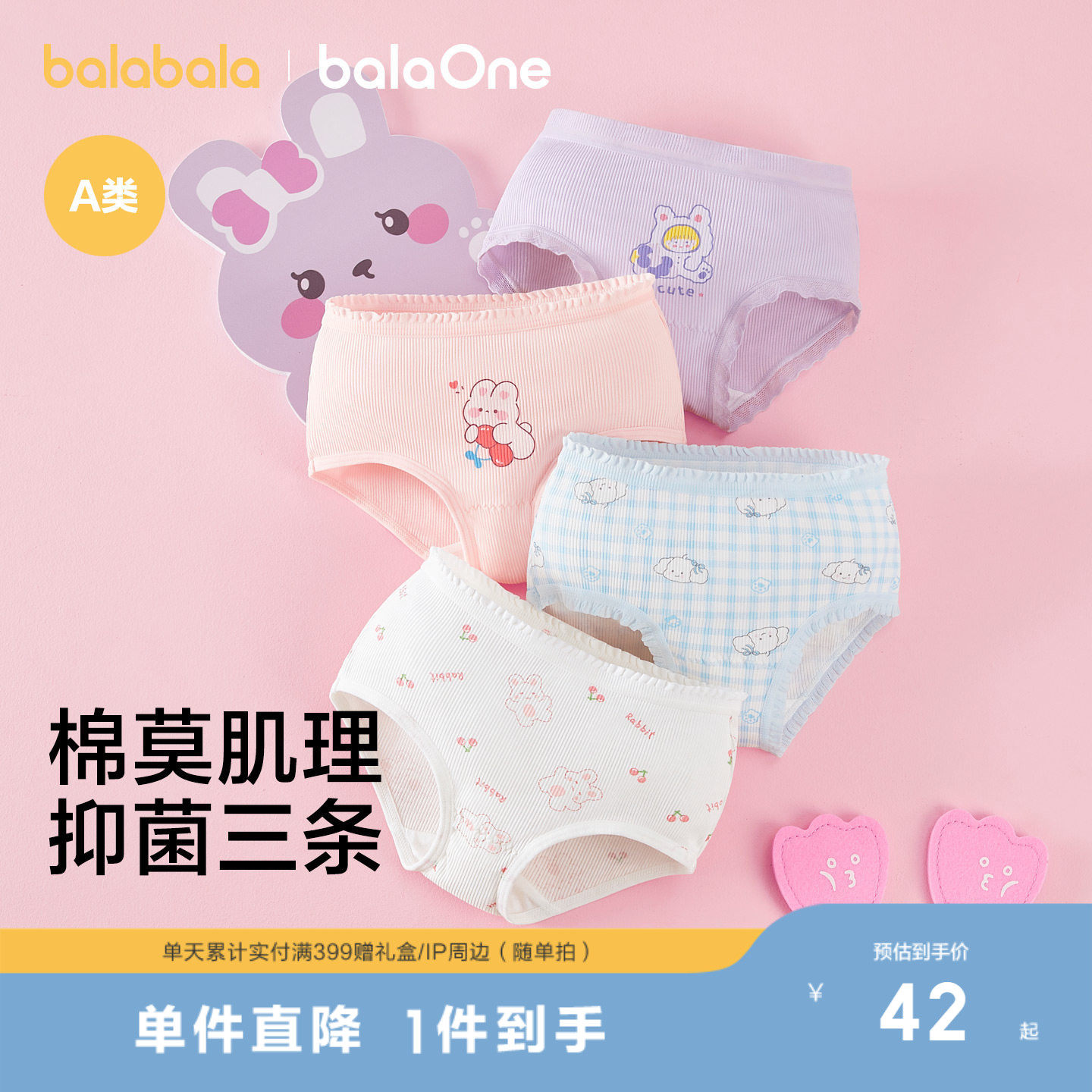 【balaOne】巴拉巴拉女童内裤儿童三角短裤大童不夹PP三条装抗菌