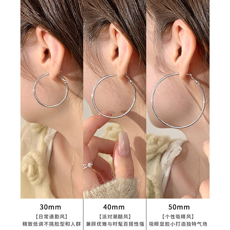 银色素圈耳环女夸张大耳圈2025新款爆款高级感圈圈耳饰耳圈耳夹