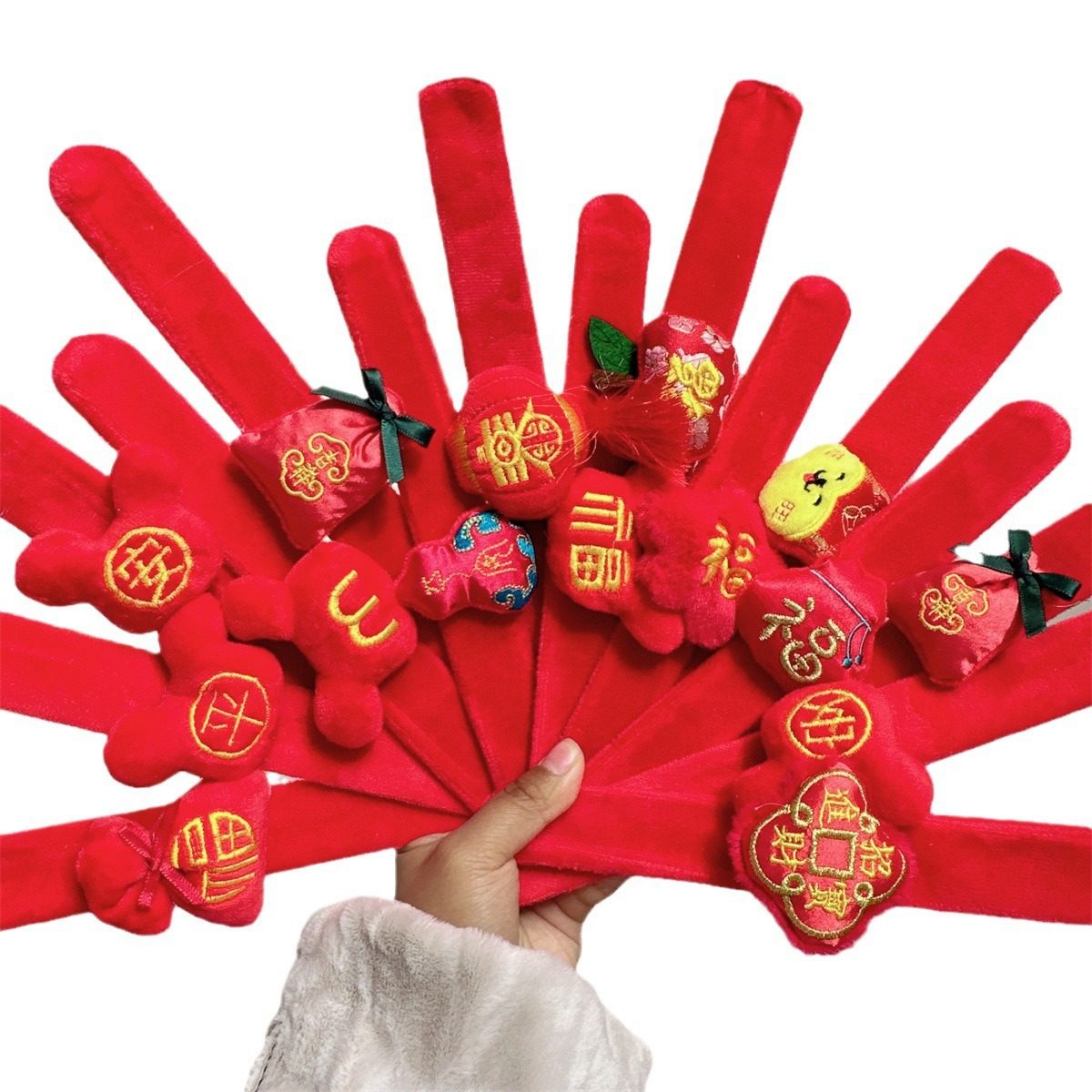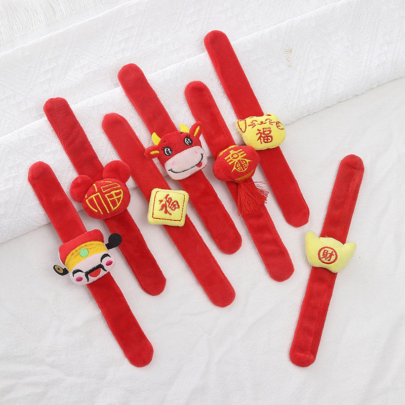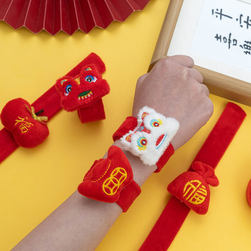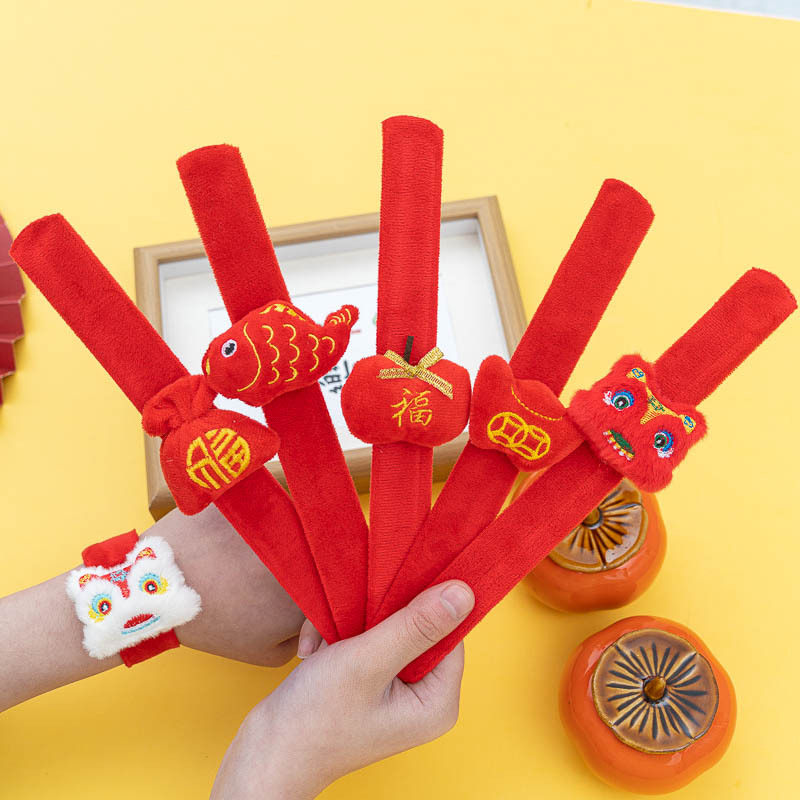新年红色毛绒啪啪圈儿童手腕装饰春节小礼品学生元旦毛绒公仔手环
