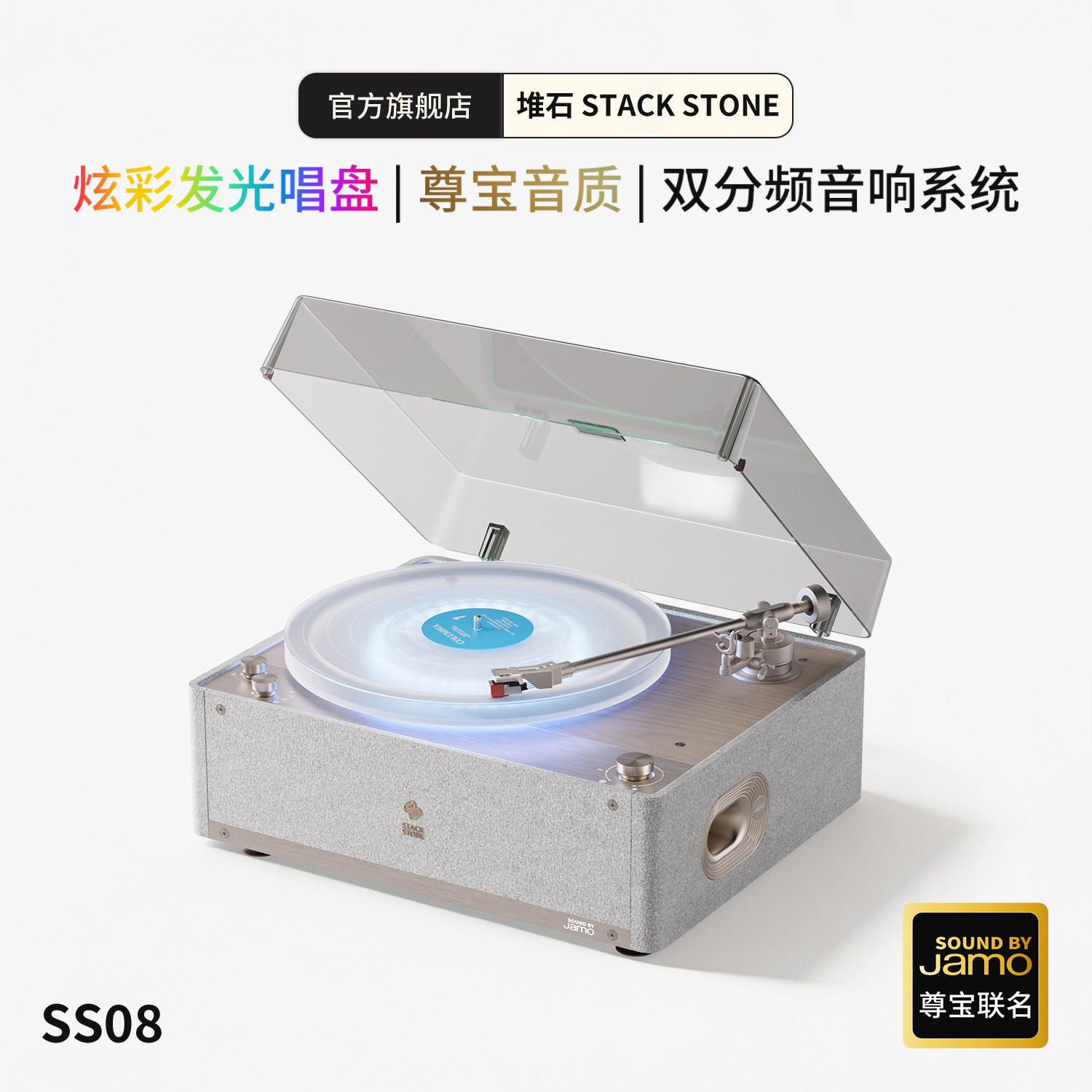 堆石x尊宝Jamo联名黑胶唱片机SS08极光版音响发光留声机礼物