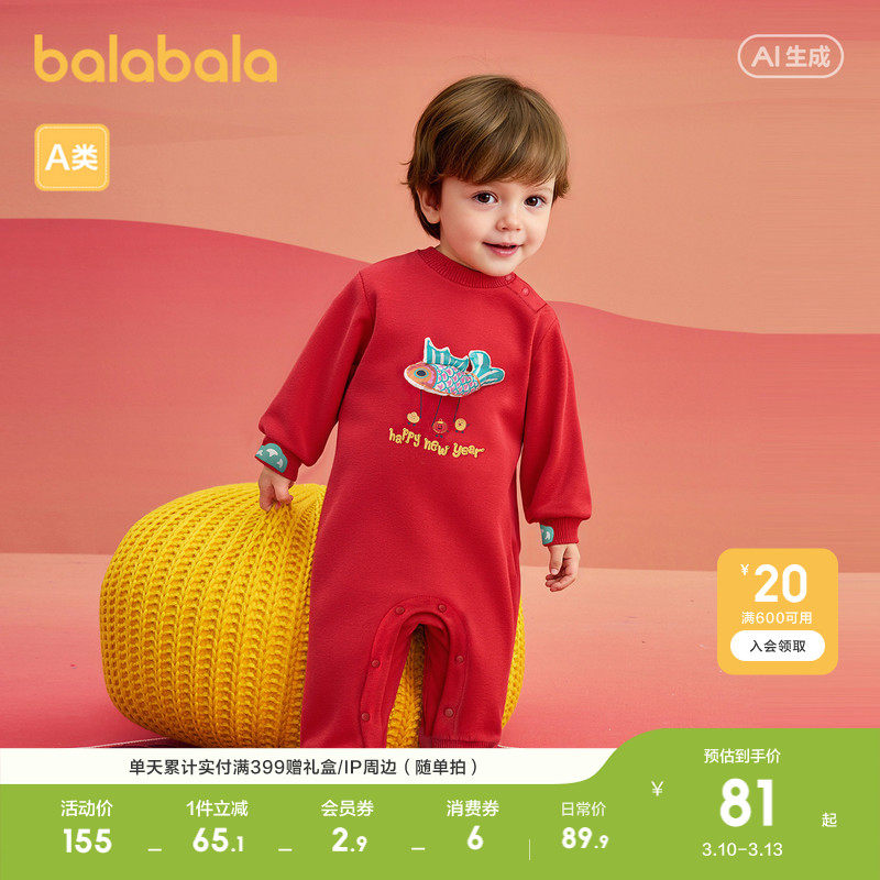 巴拉巴拉童装宝宝连体衣新生儿爬服婴儿衣服2026拜年服红色春秋装