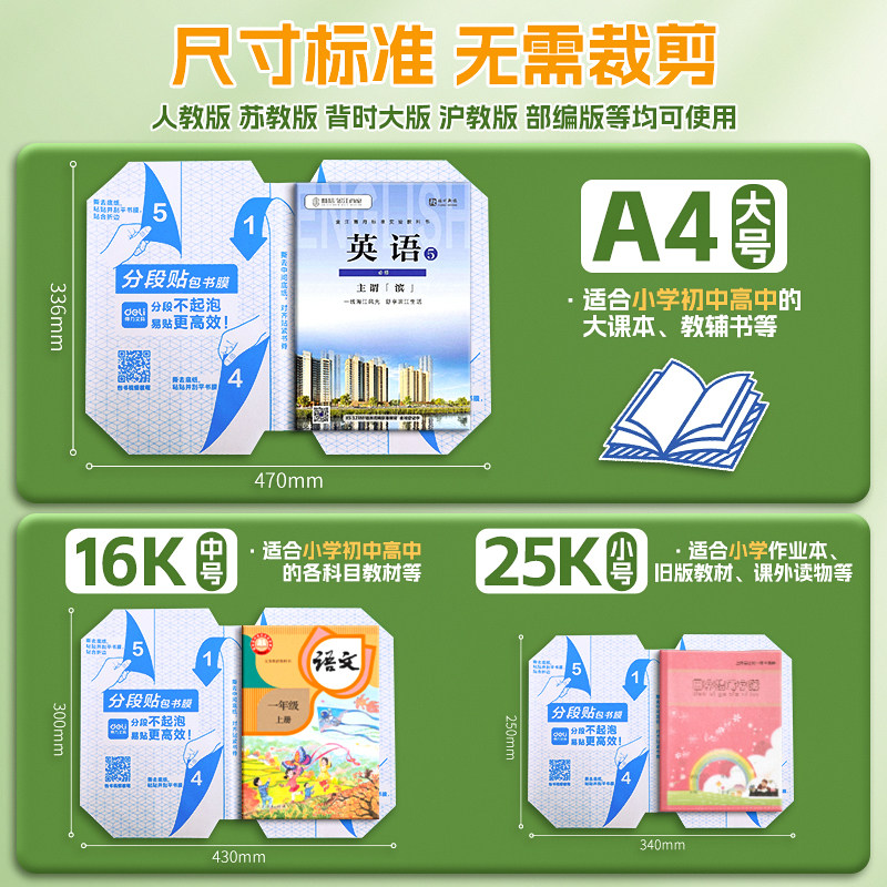 包书皮自粘透明磨砂书皮纸小学生专用一年级二三年上册中号16k课本2025新款书本封皮保护套书套书膜全套贴纸