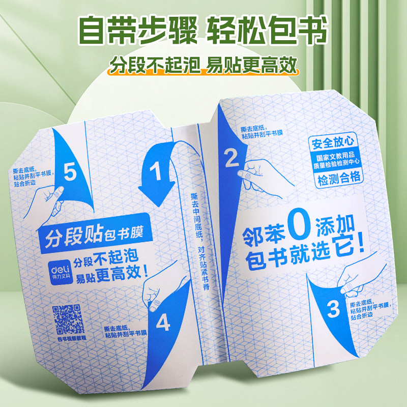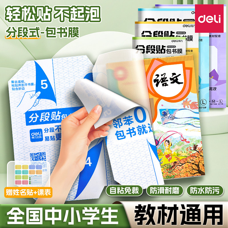 【2件5折】得力纽赛分段式包书皮书套包书膜带定位书皮纸自粘透明磨砂加厚16K小学生一年级防水防滑塑料课本