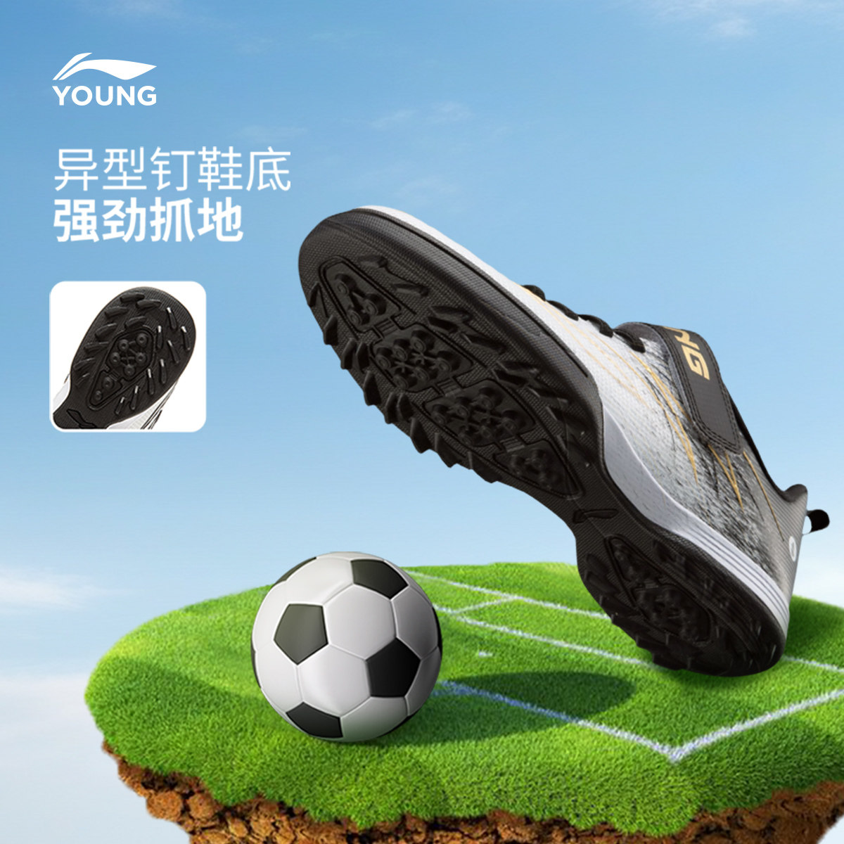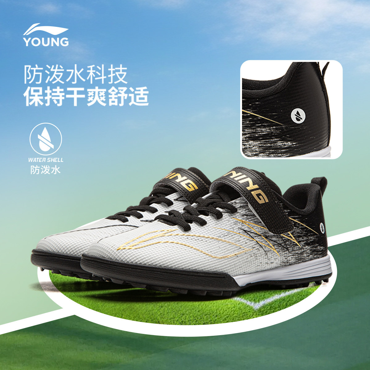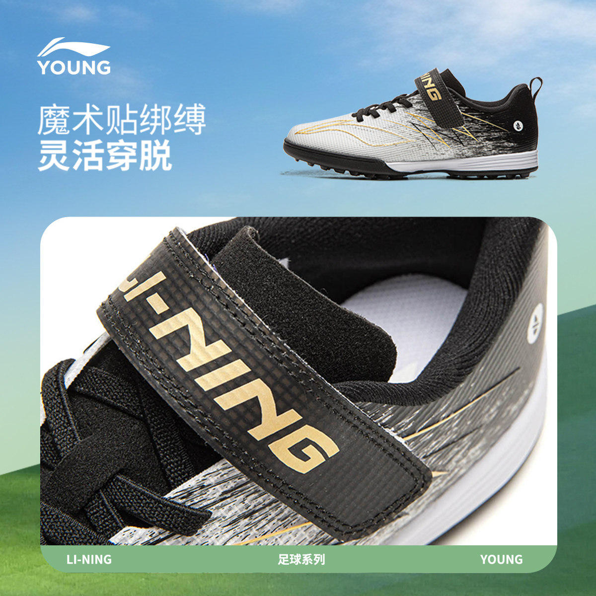 李宁童鞋足球鞋男大童疾影4 TF YOUNG防泼水青少年低帮童鞋