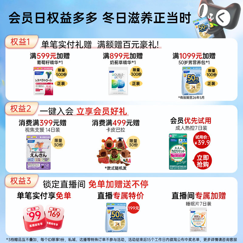 FANCL成人热控片纤体丸左旋肉碱内脂支援组合数字管理阻碳水芳珂