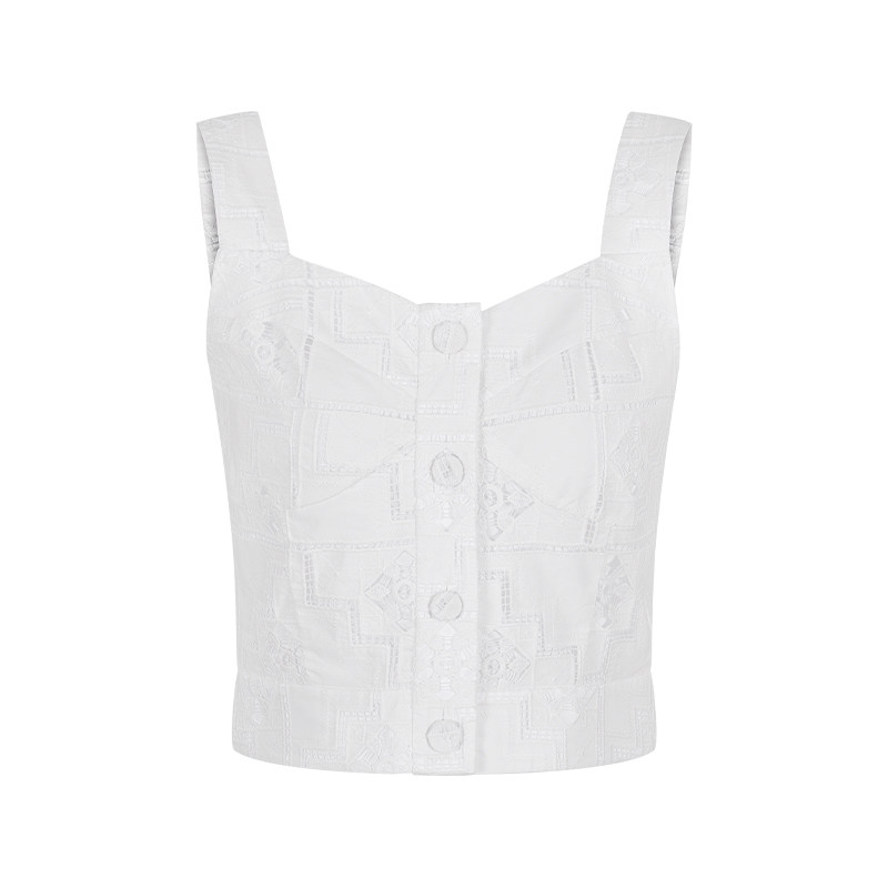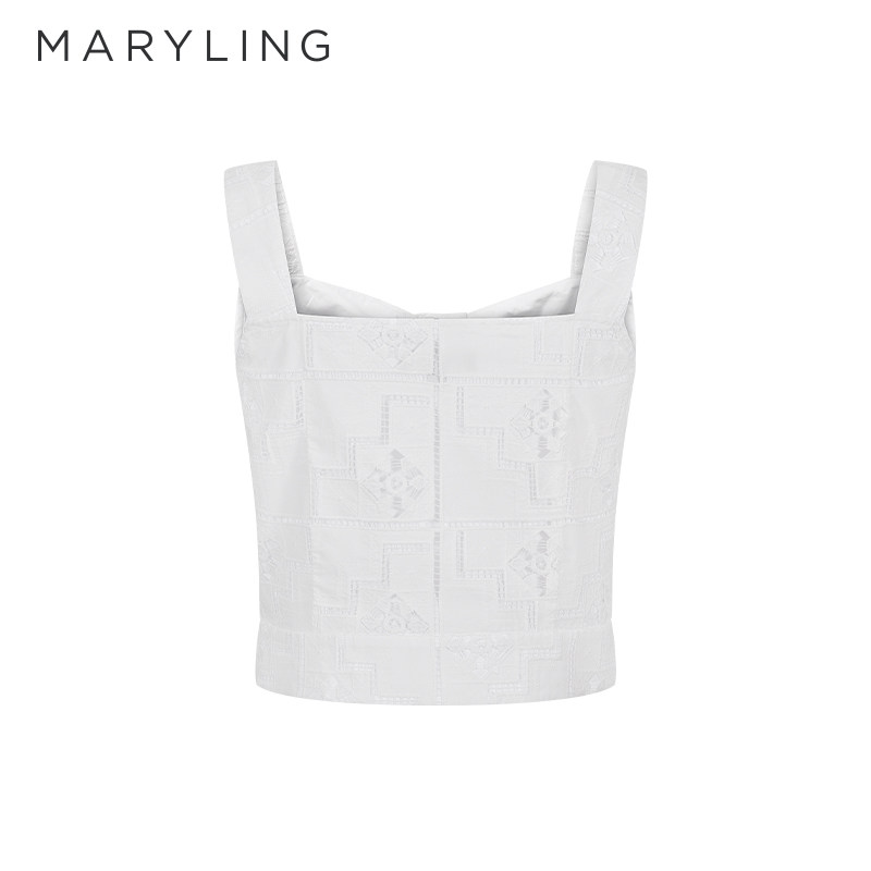 MARYLING玛俪琳夏季新品白色蕾丝肩带设计上衣A1ECW28140