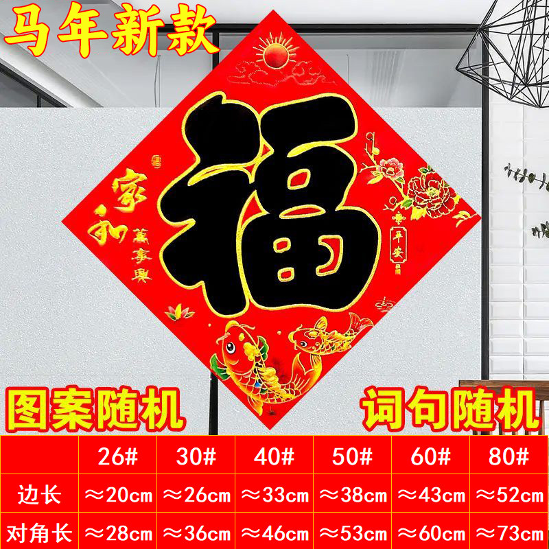 福字门贴2026新款马年高档贴纸窗花农村过年装饰烫金对联特大号