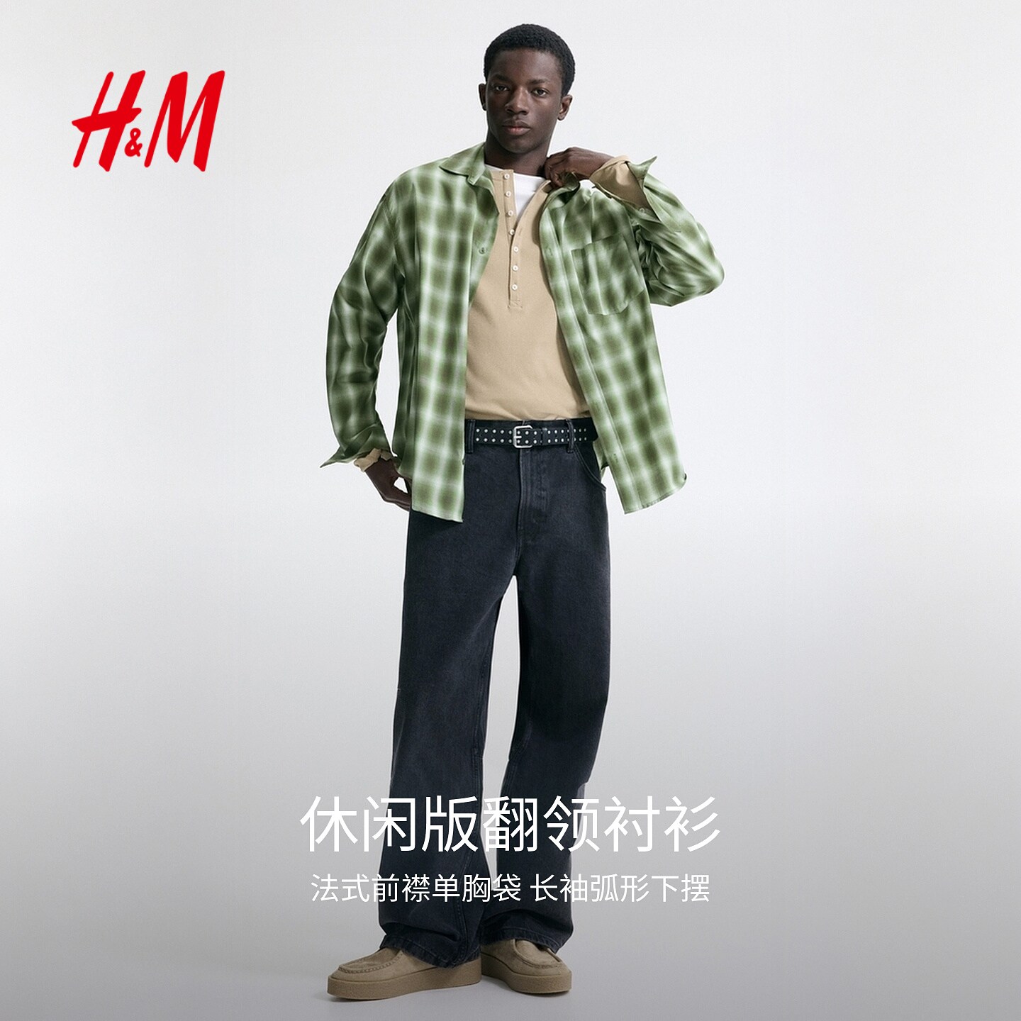 【侯明昊同款】HM男装女装衬衫春季复古格子美式潮流衫1310164