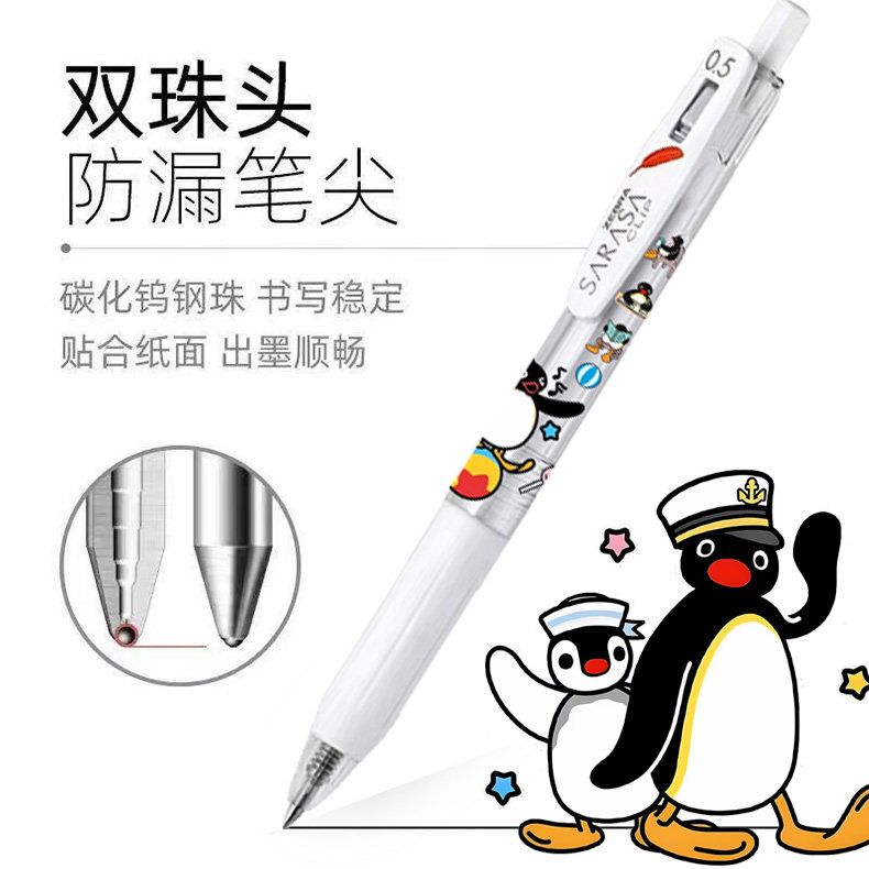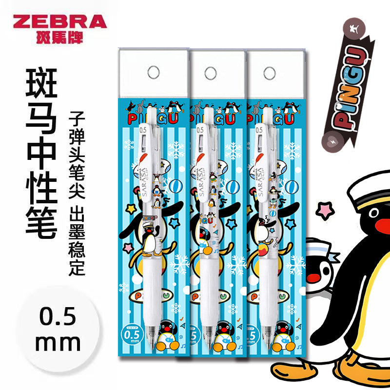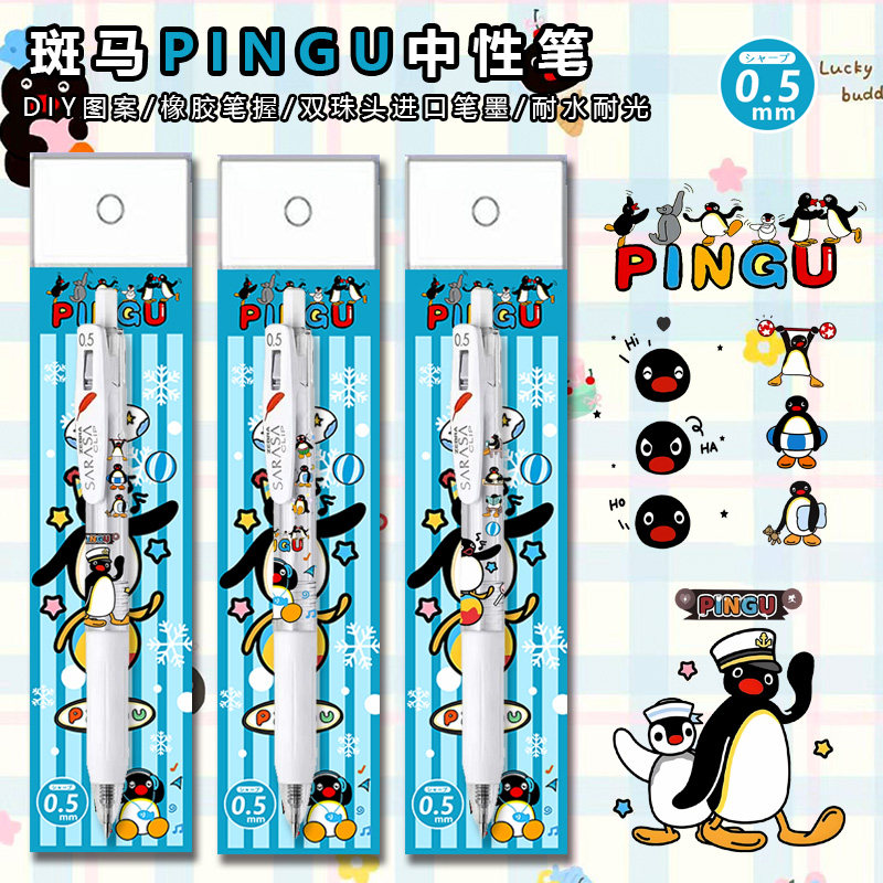 日本ZEBRA斑马笔JJ99按动中性笔pingu周边企鹅时代限定卡通图案DIY日系ins风少女心小学生考试专用黑笔初高中
