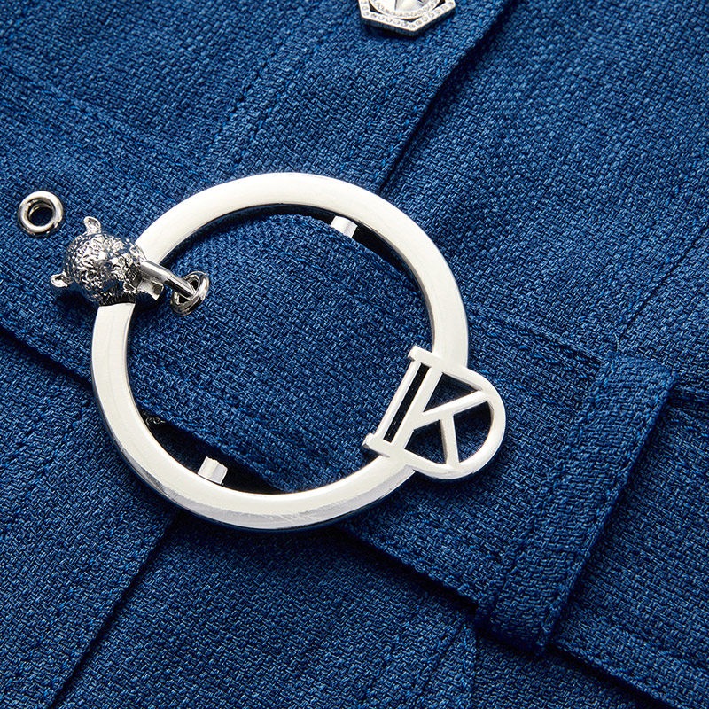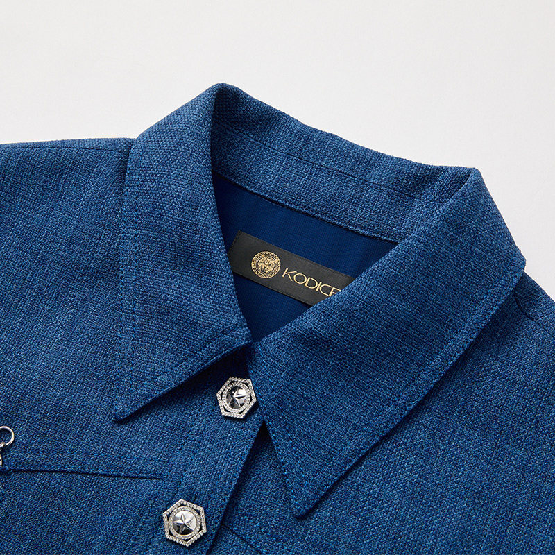 KODICE春夏新款蓝色翻领连衣裙子收腰短袖工装裙时尚百搭流行女装
